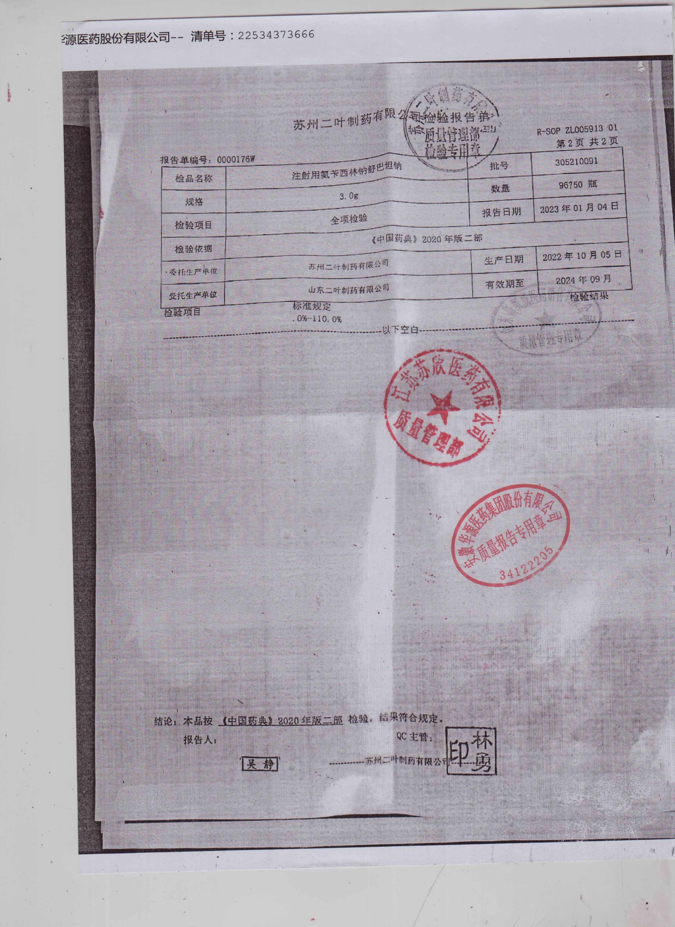 注射用氨苄西林钠舒巴坦钠305210091(2)