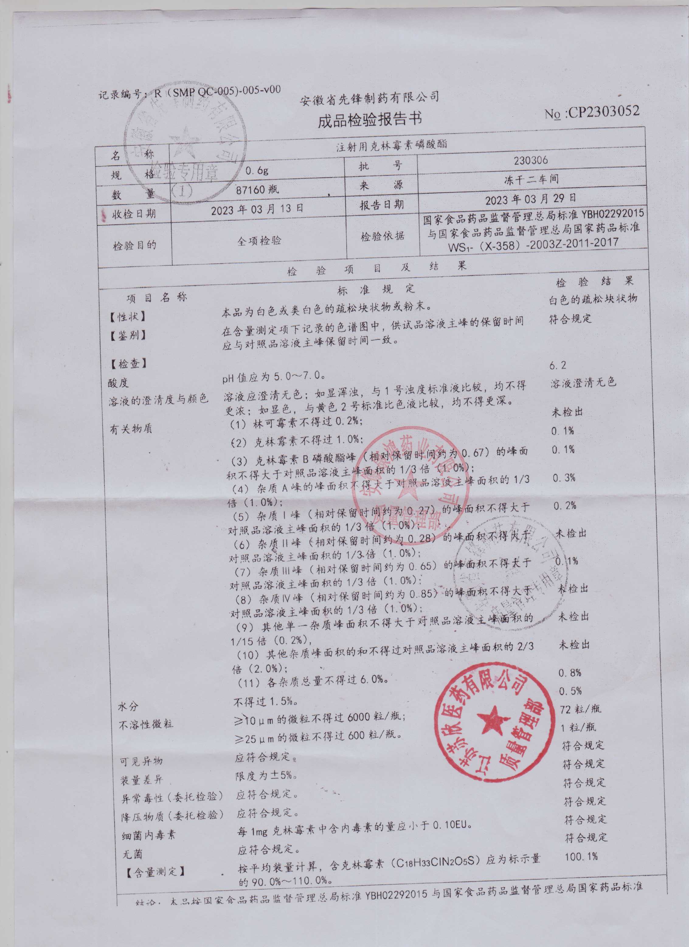 注射用克林霉素磷酸酯230306