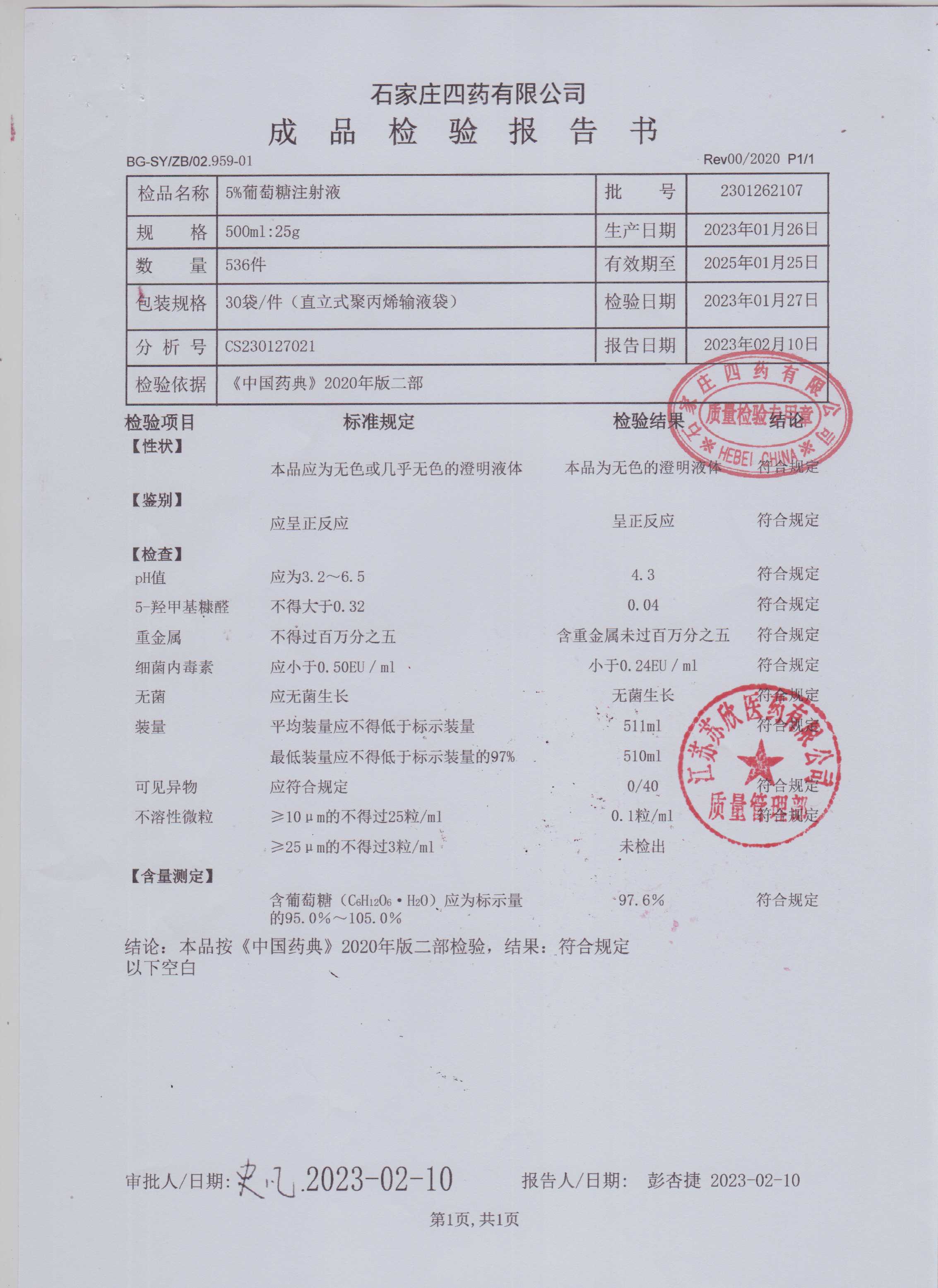 5%葡萄糖注射液2301262107