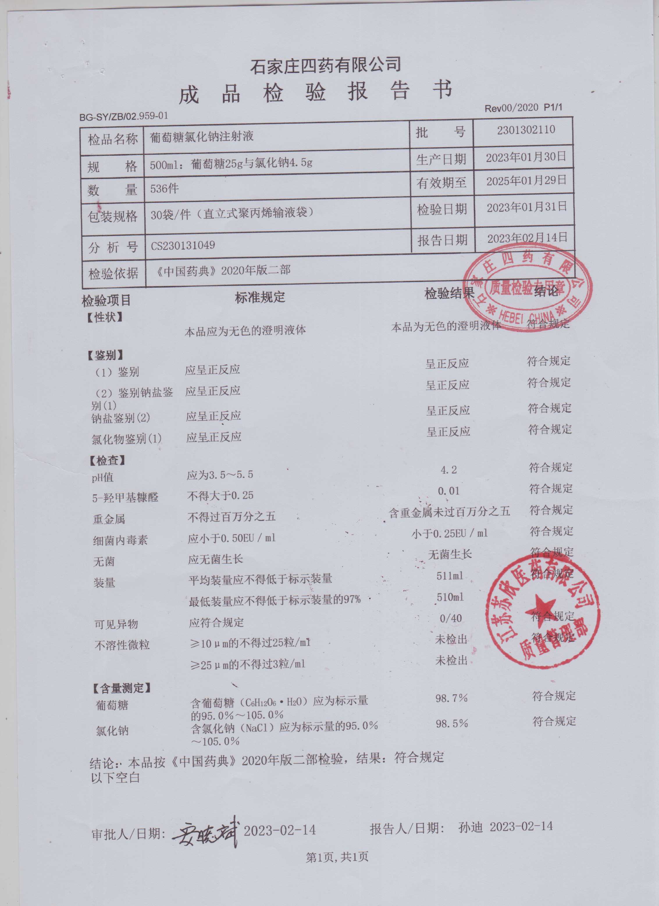 葡萄糖氯化钠注射液2301302110