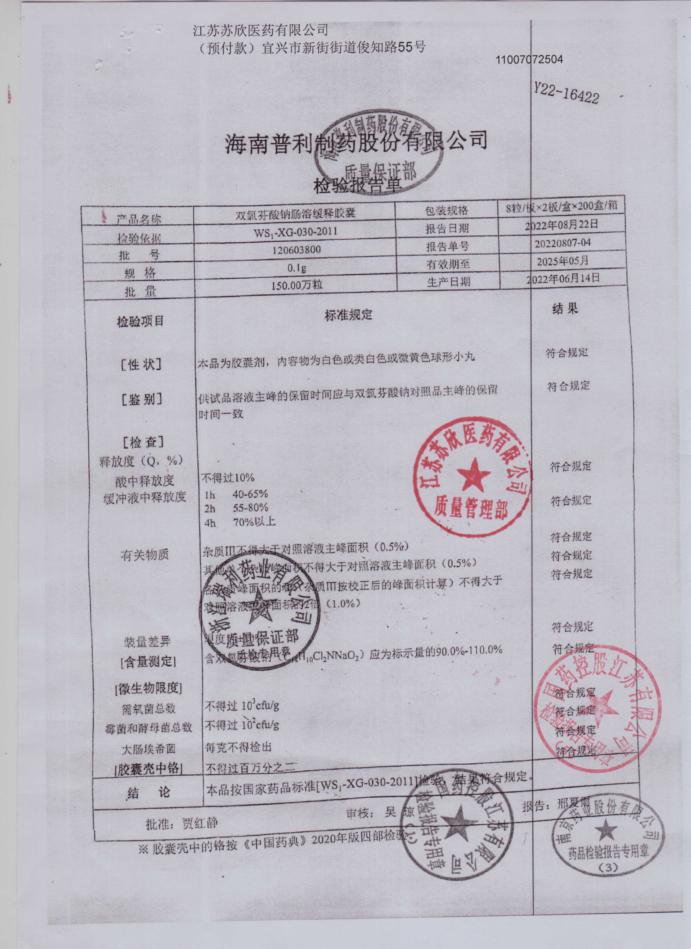双氯芬酸钠肠溶缓释胶囊120603800