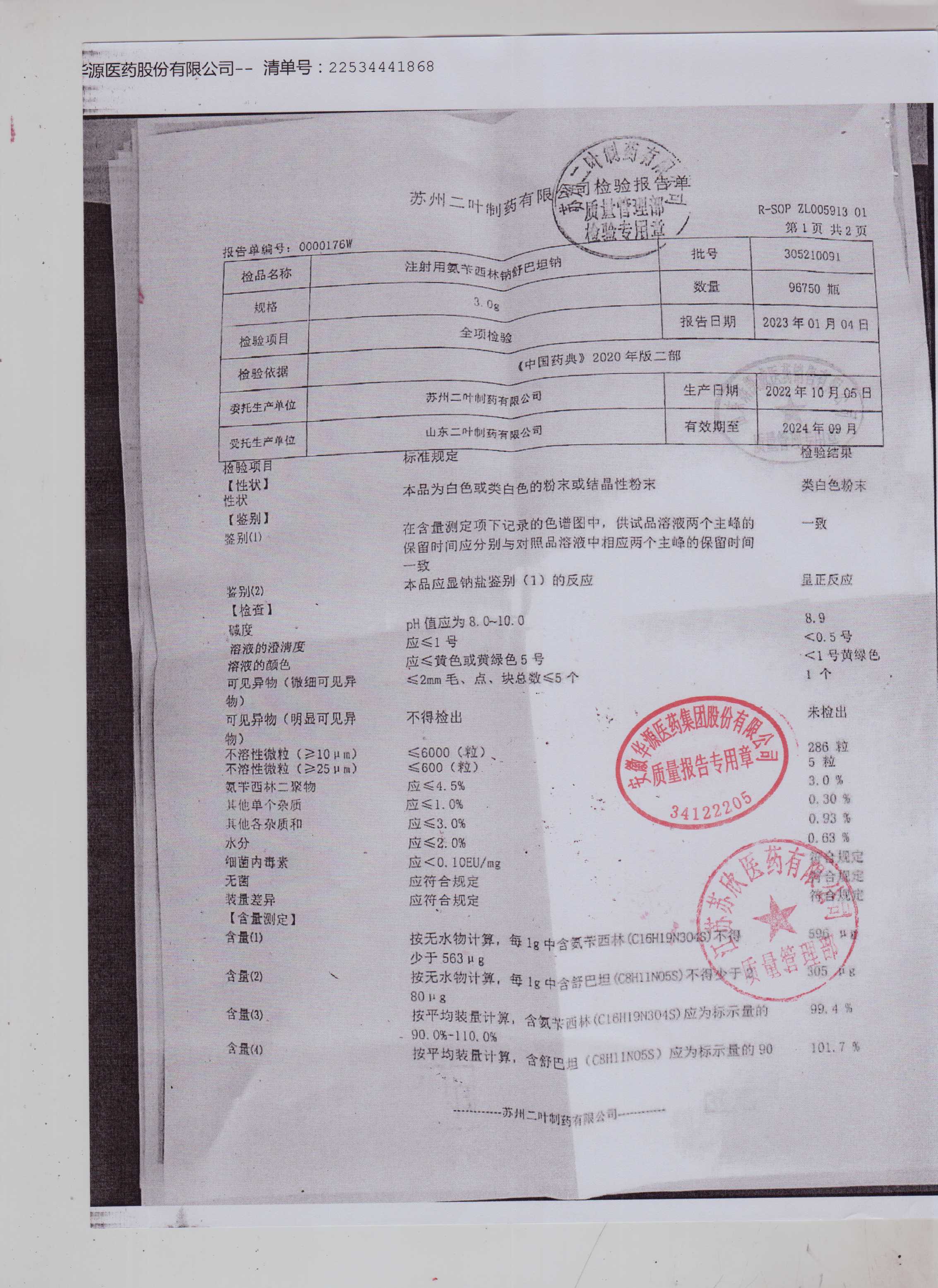 注射用氨苄西林钠舒巴坦钠305210091(1)