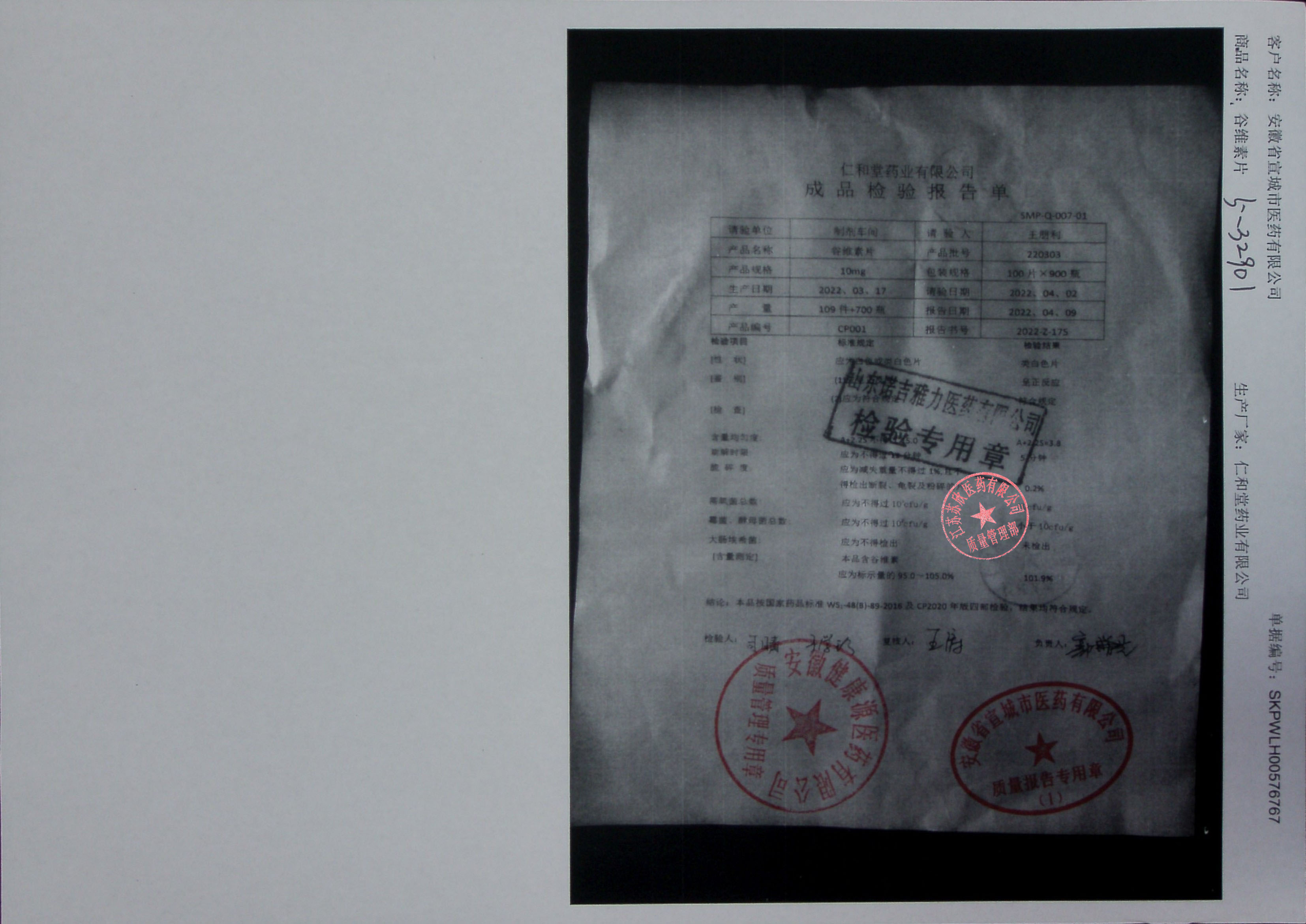 谷维素片220303