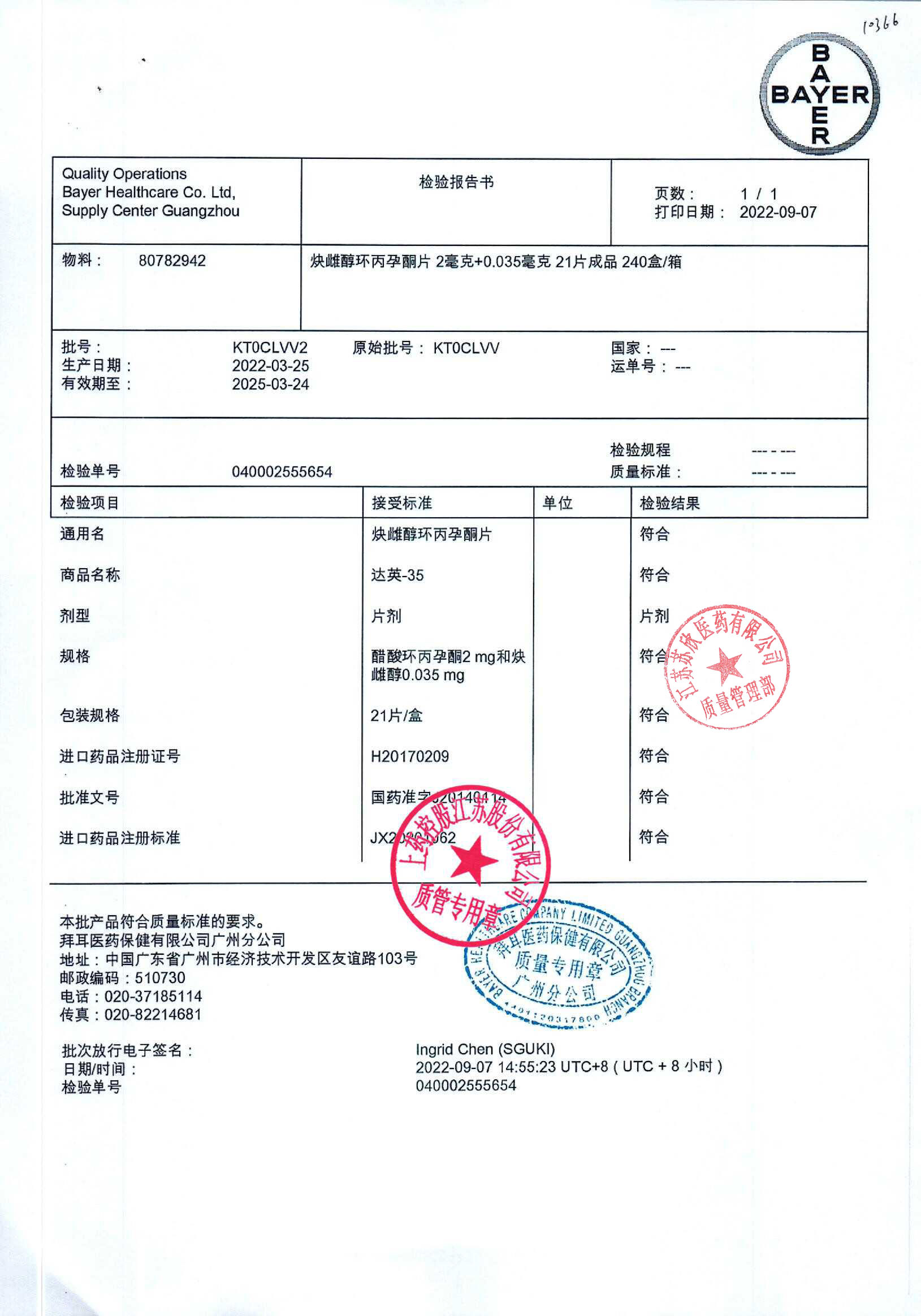 炔雌醇环丙孕酮片(达英-35)KT0CLVV2
