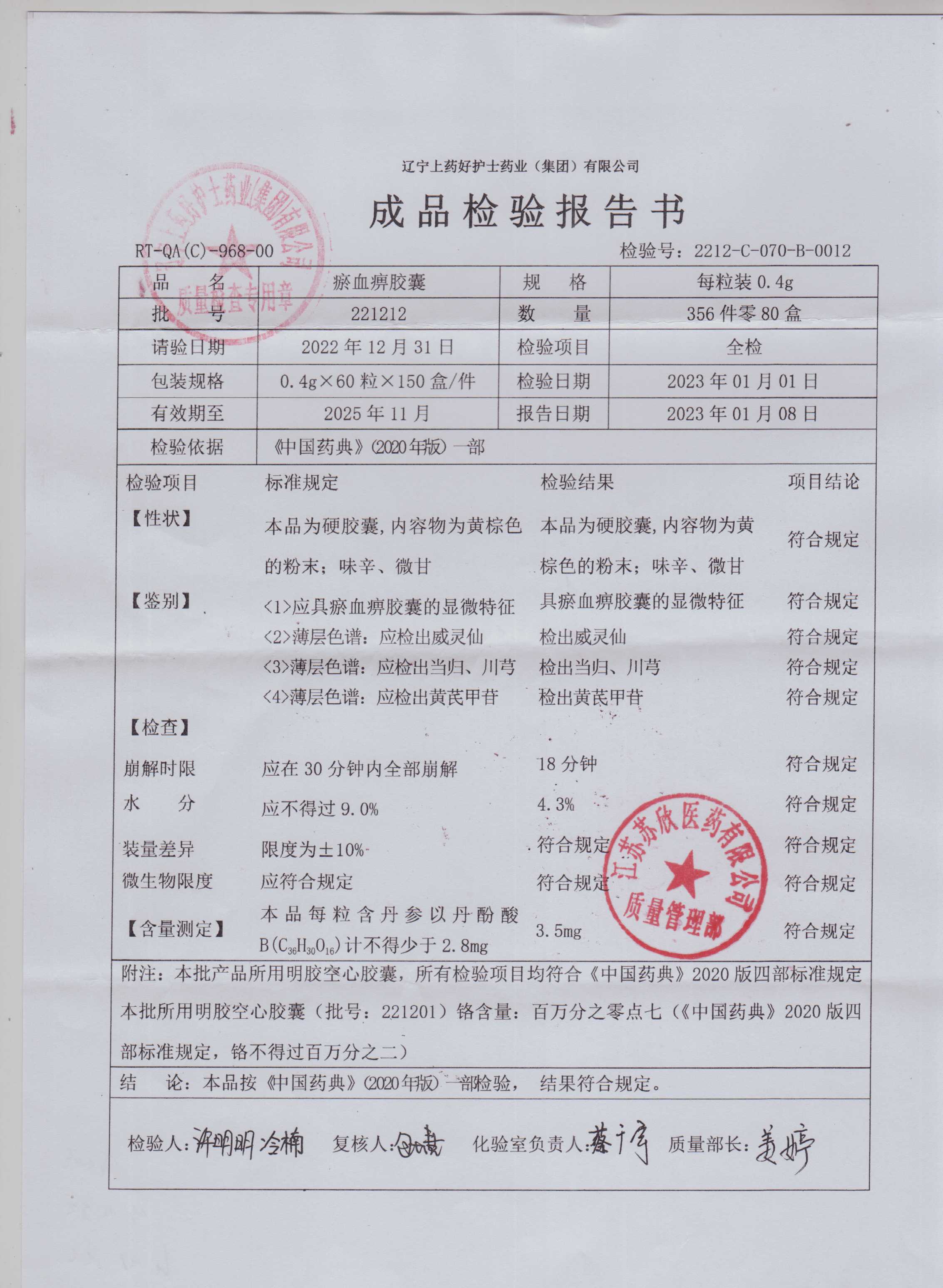 瘀血痹胶囊221212