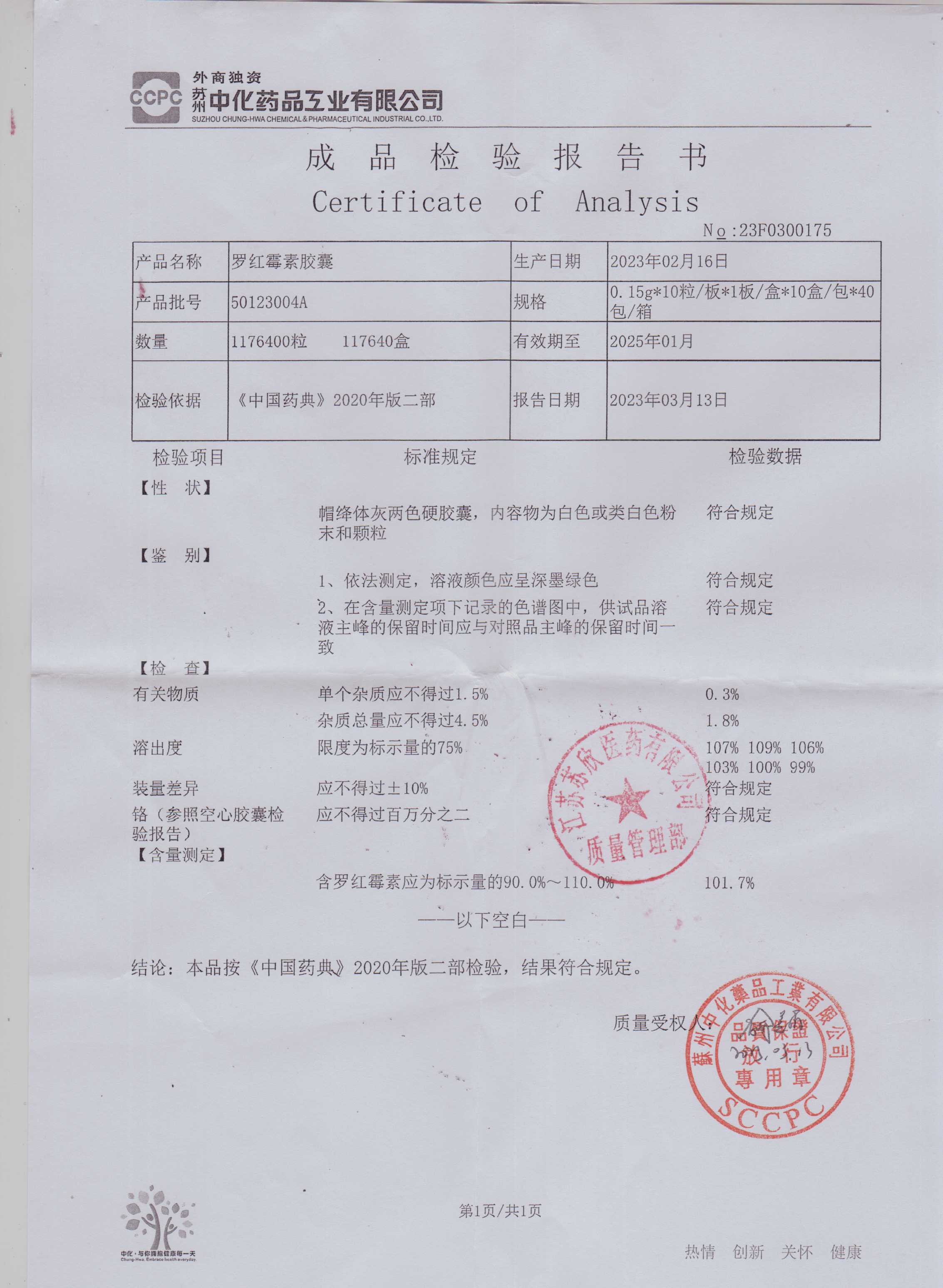 罗红霉素胶囊50123004A