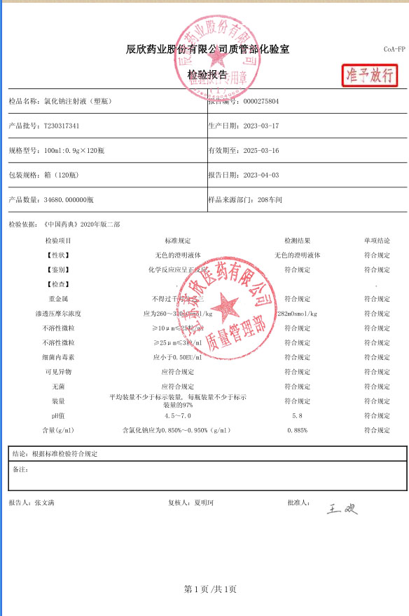 氯化钠注射液(塑瓶)T230317341