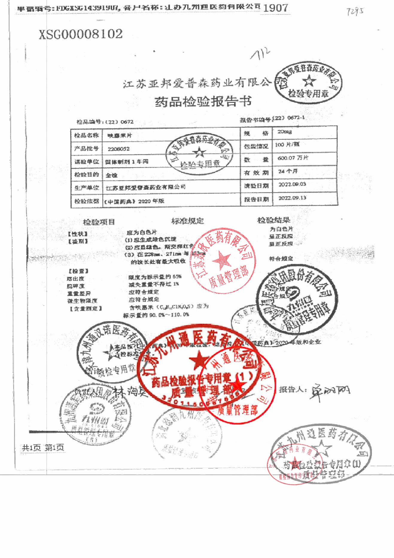 >> 检验报告书 >> 检验报告书