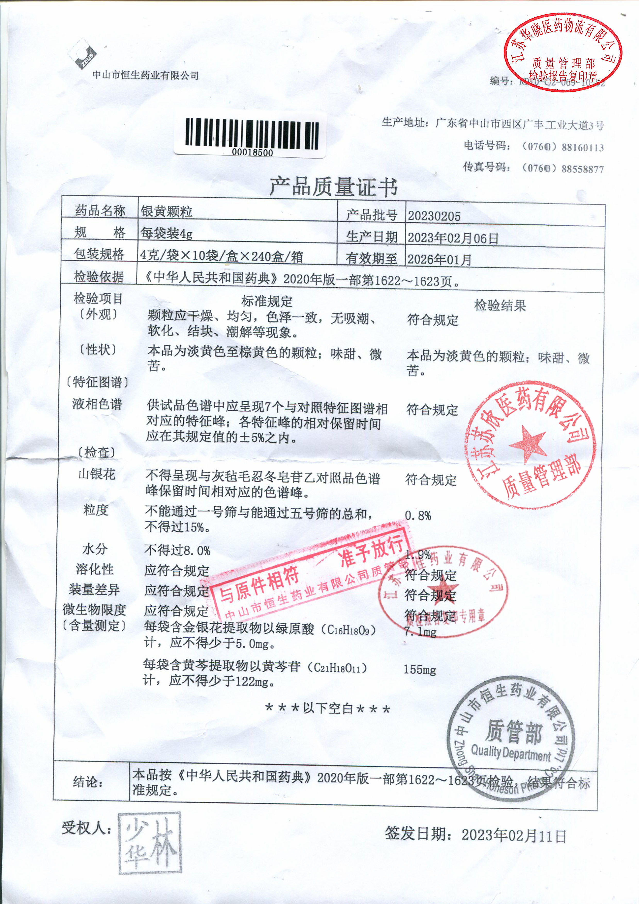 银黄颗粒20230205