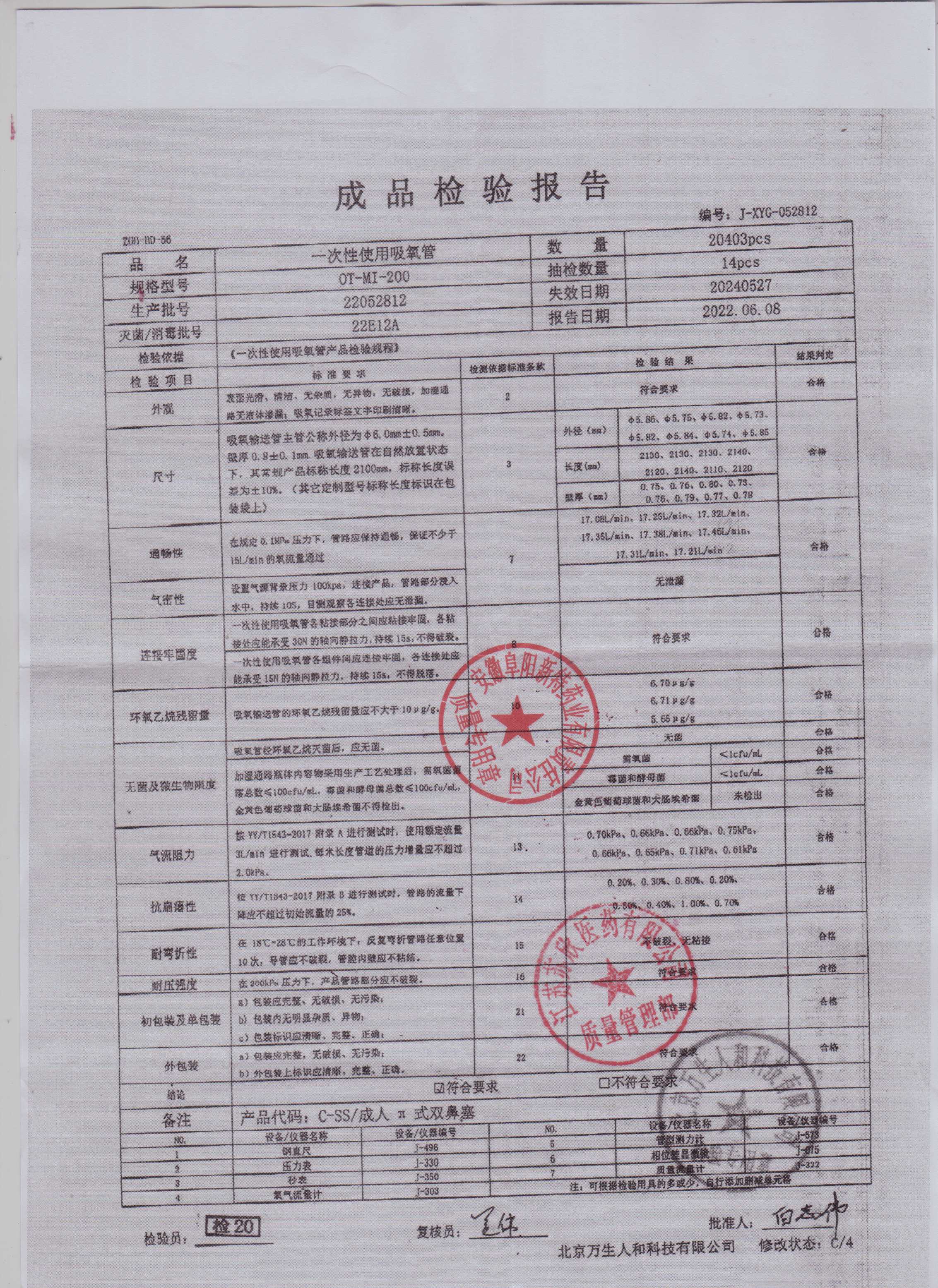 一次性使用吸氧管22052812