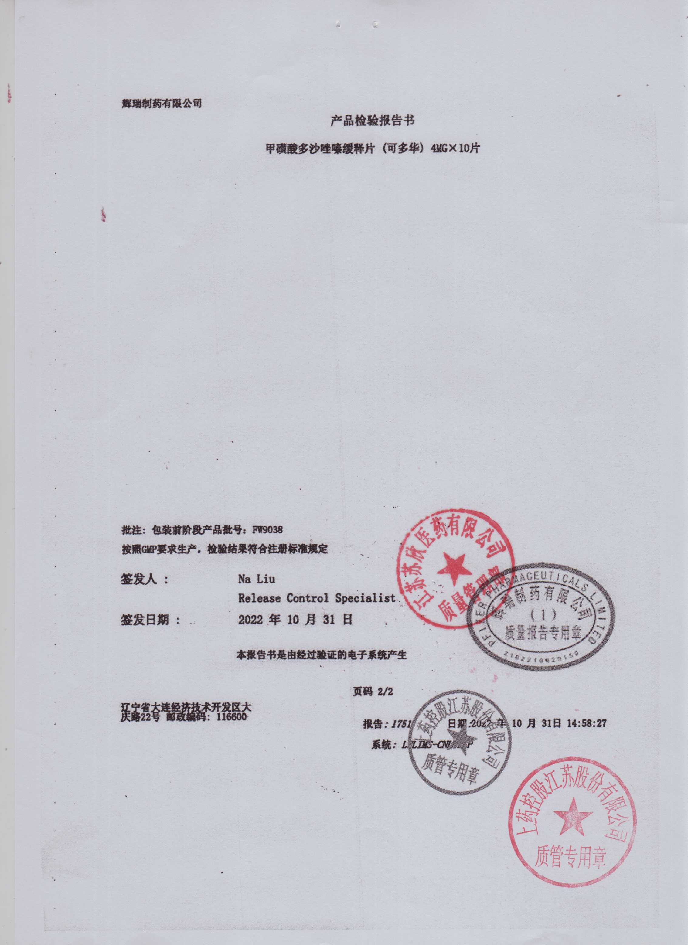 甲磺酸多沙唑嗪缓释片8145836(2)