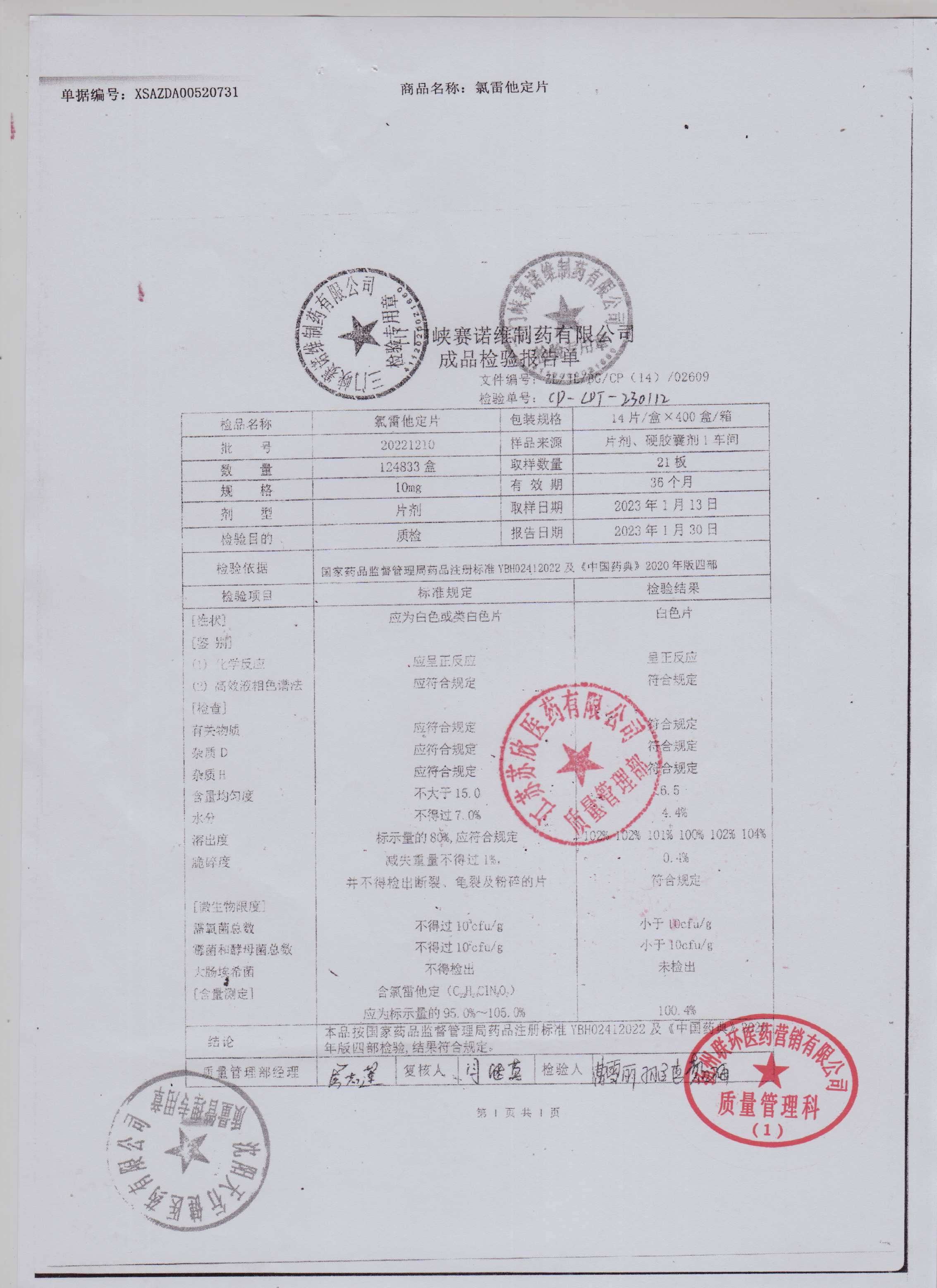 氯雷他定片20221210