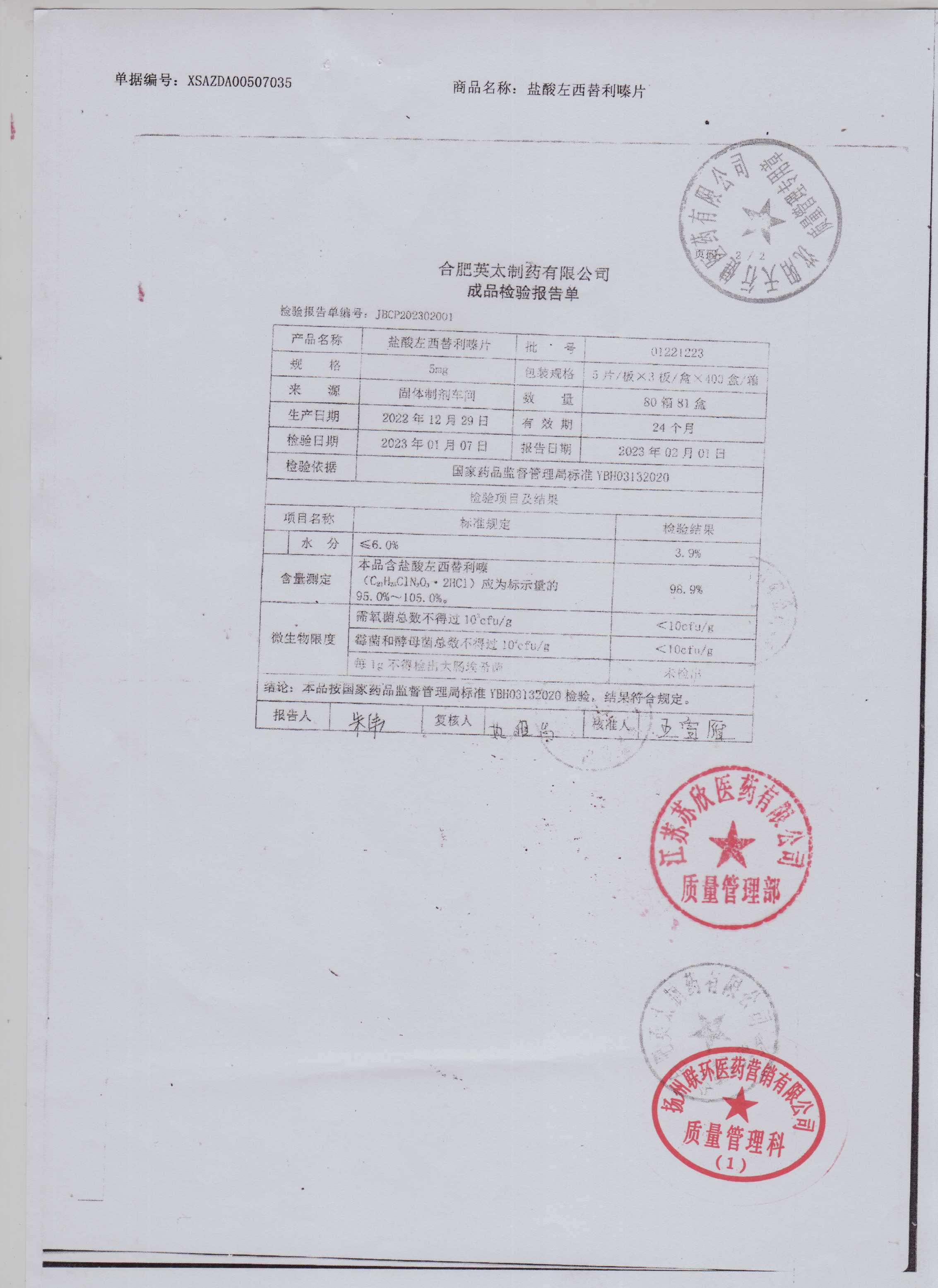盐酸左西替利嗪片01221223(1)