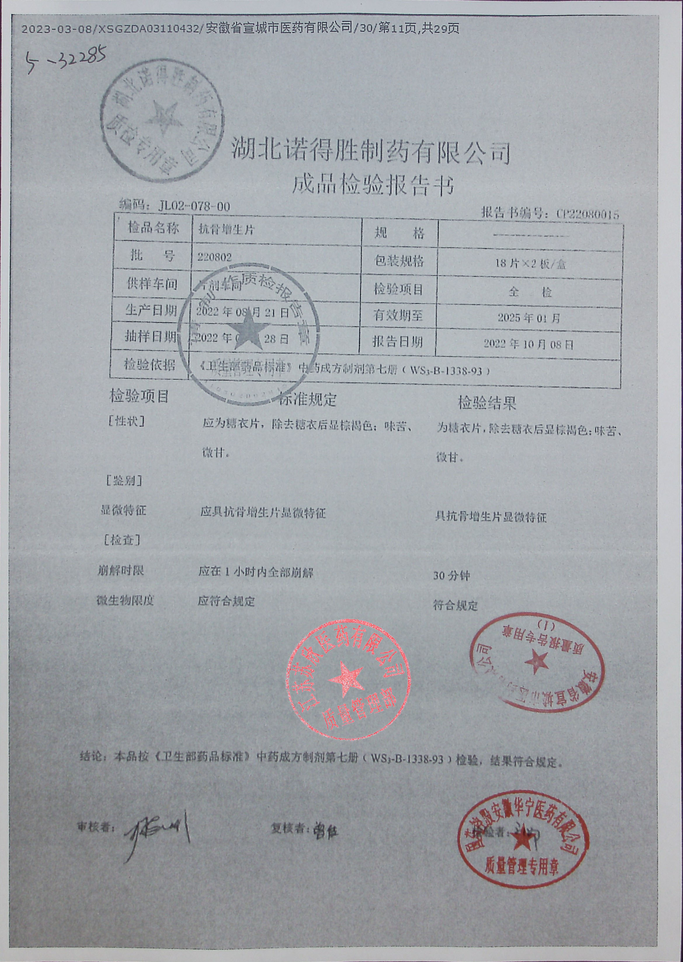 抗骨增生片220802