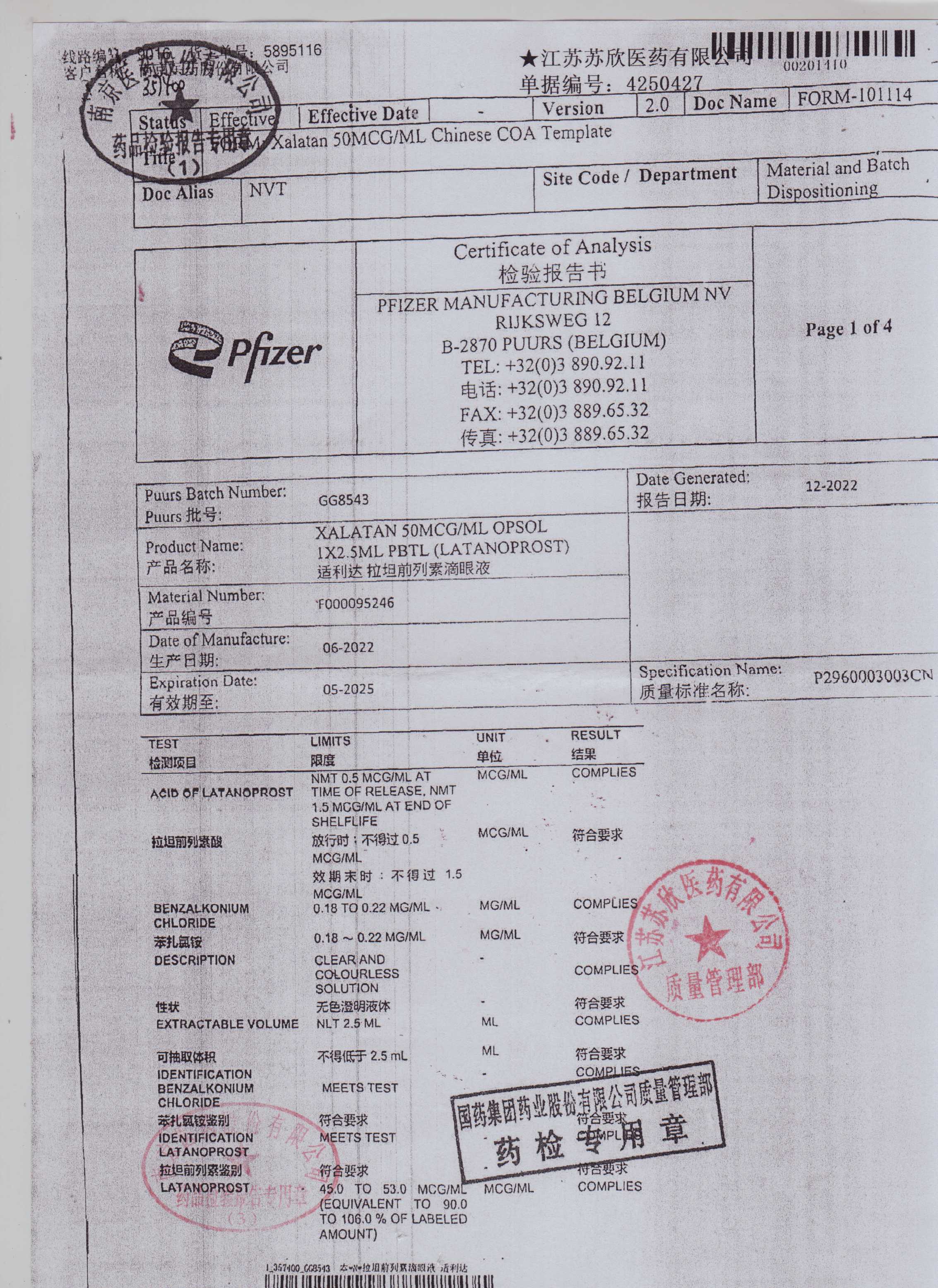 拉坦前列素滴眼液GG8543(1)