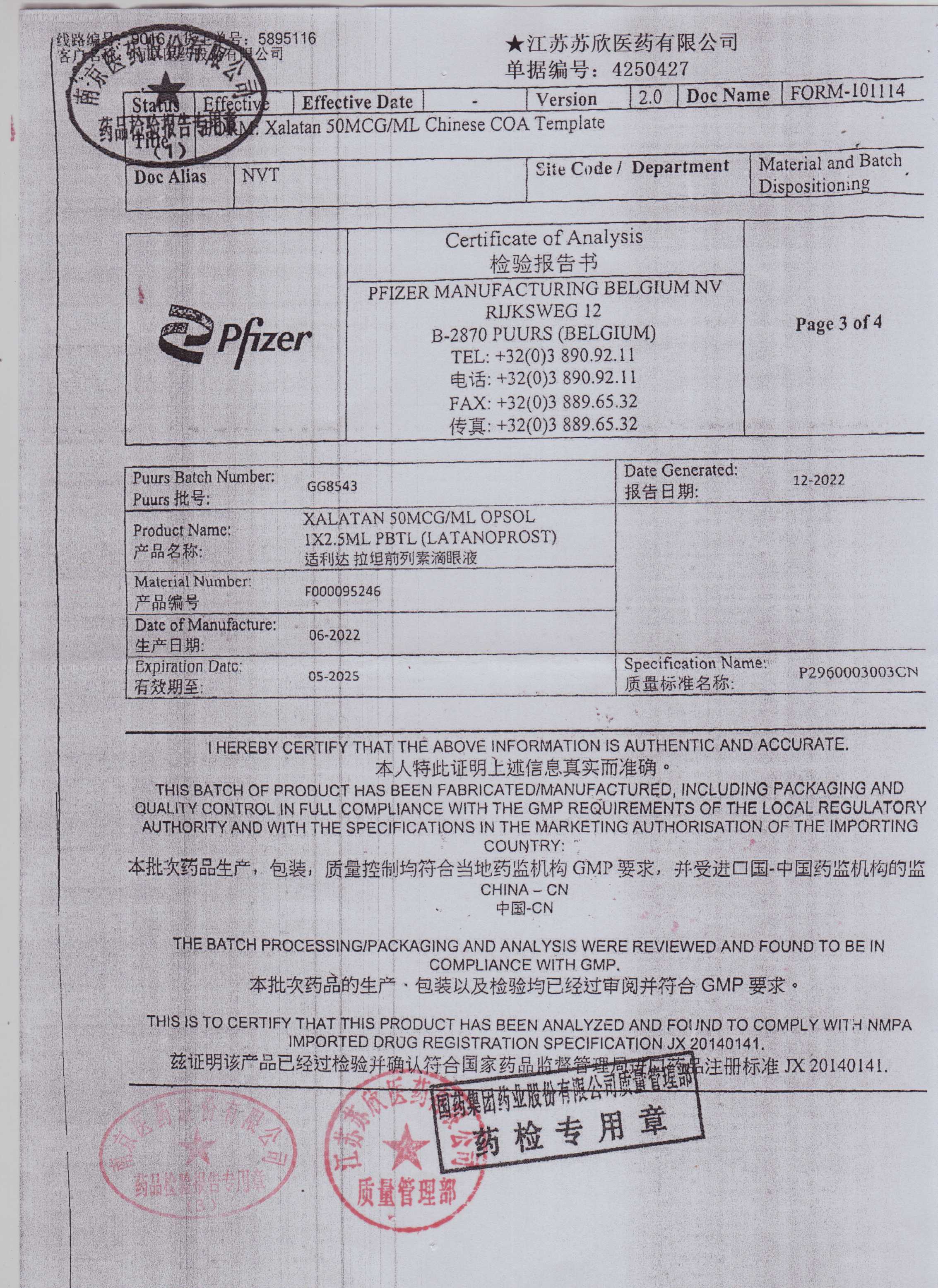 拉坦前列素滴眼液GG8543(3)