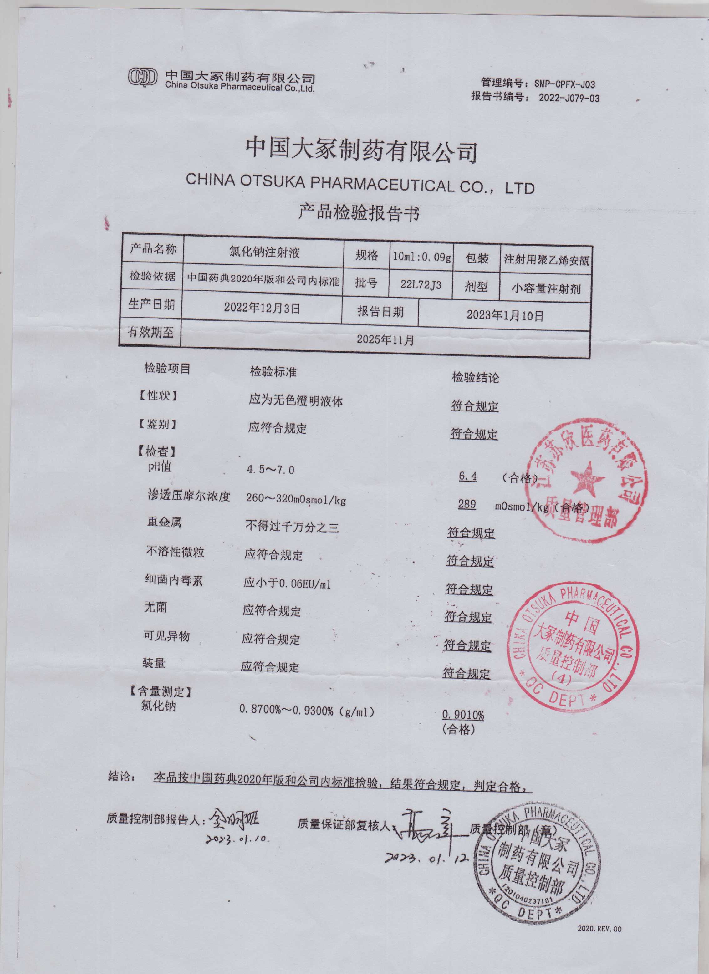 氯化钠注射液22L72J3
