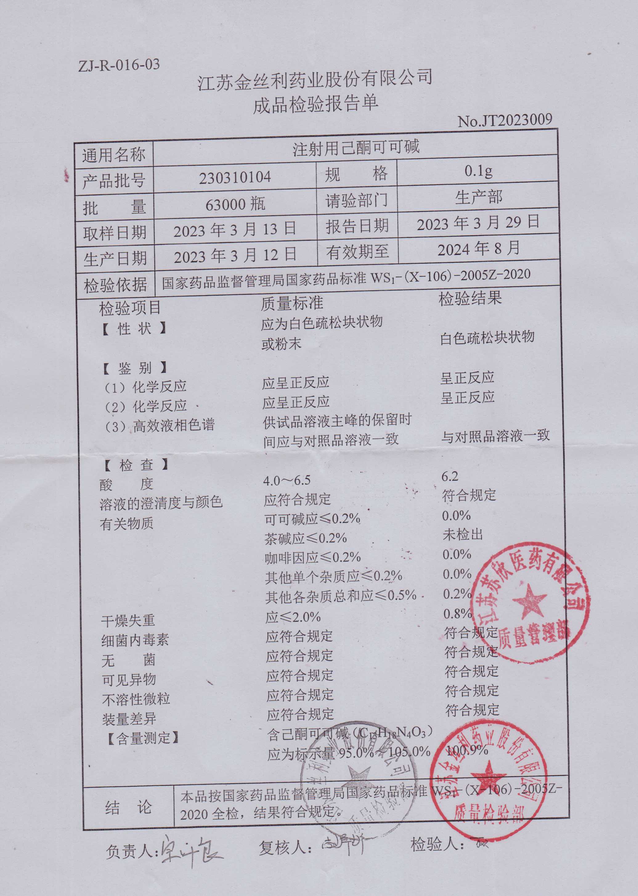 注射用己酮可可碱230310104