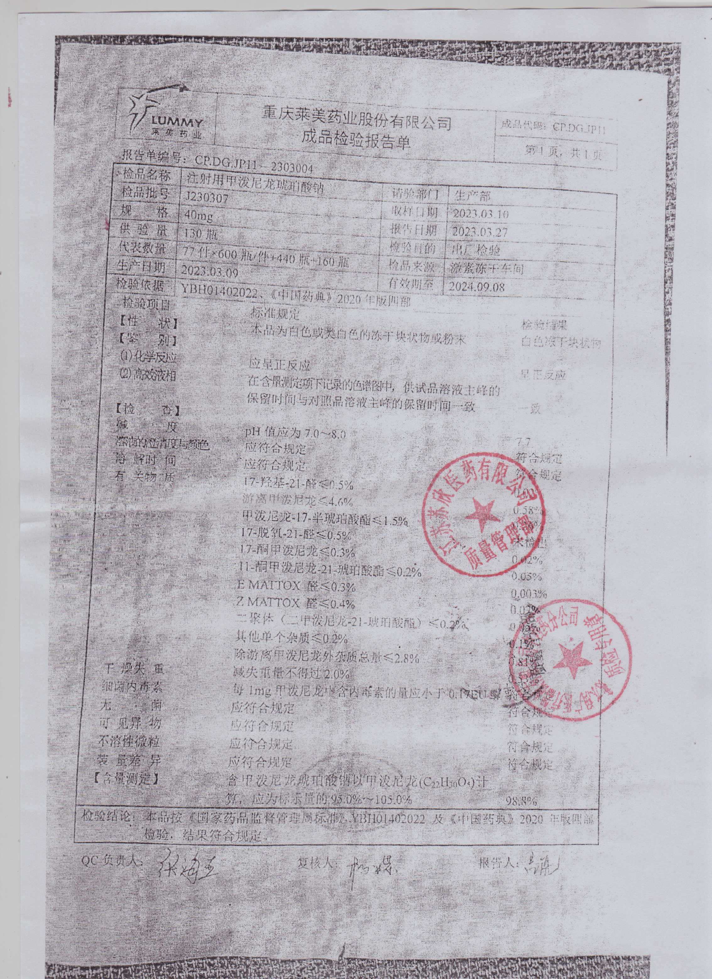 注射用甲泼尼龙琥珀酸钠J230307