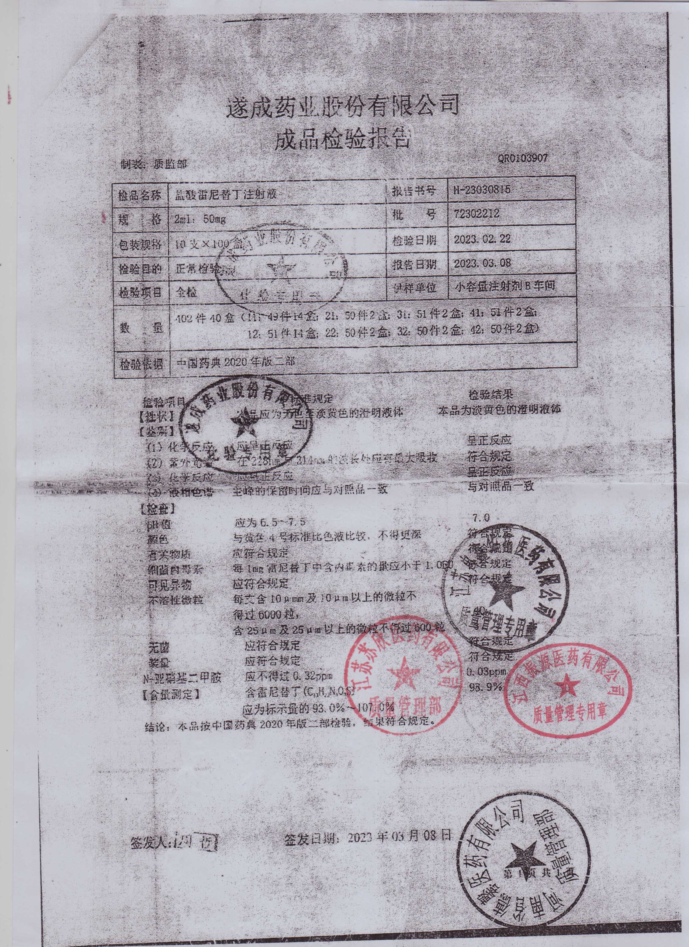 盐酸雷尼替丁注射液72302212