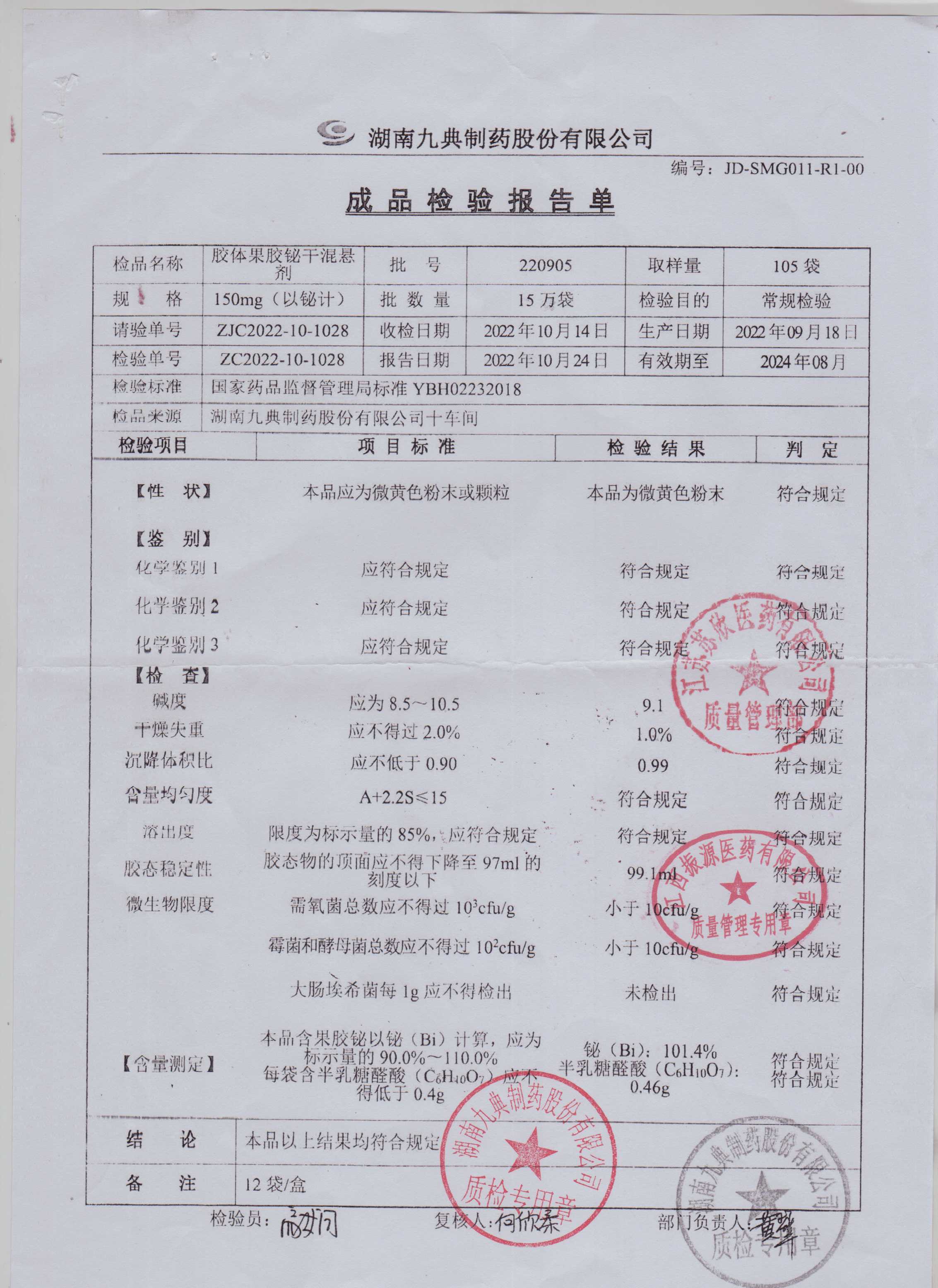胶体果胶铋干混悬剂220905