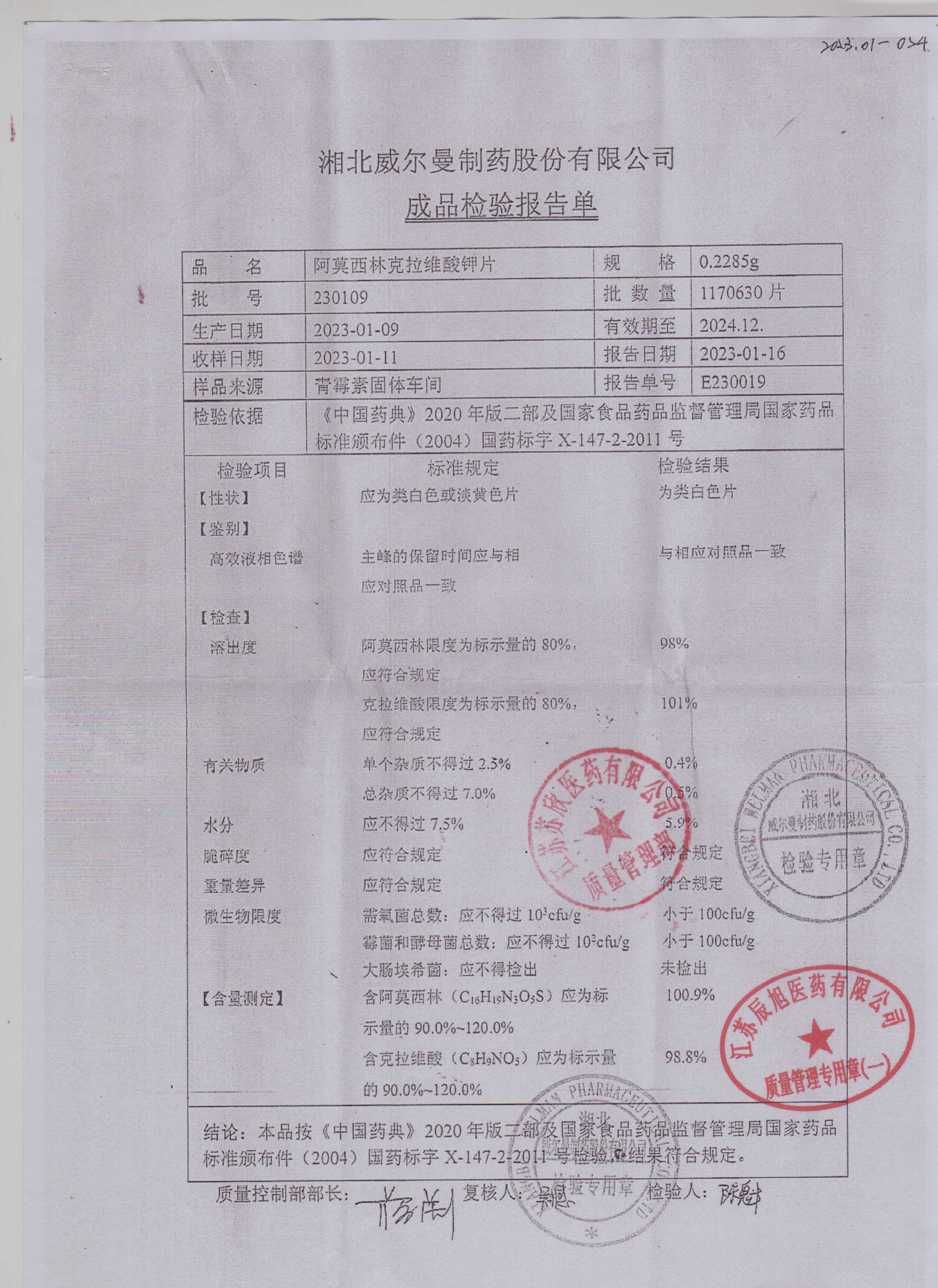 阿莫西林克拉维酸钾230109