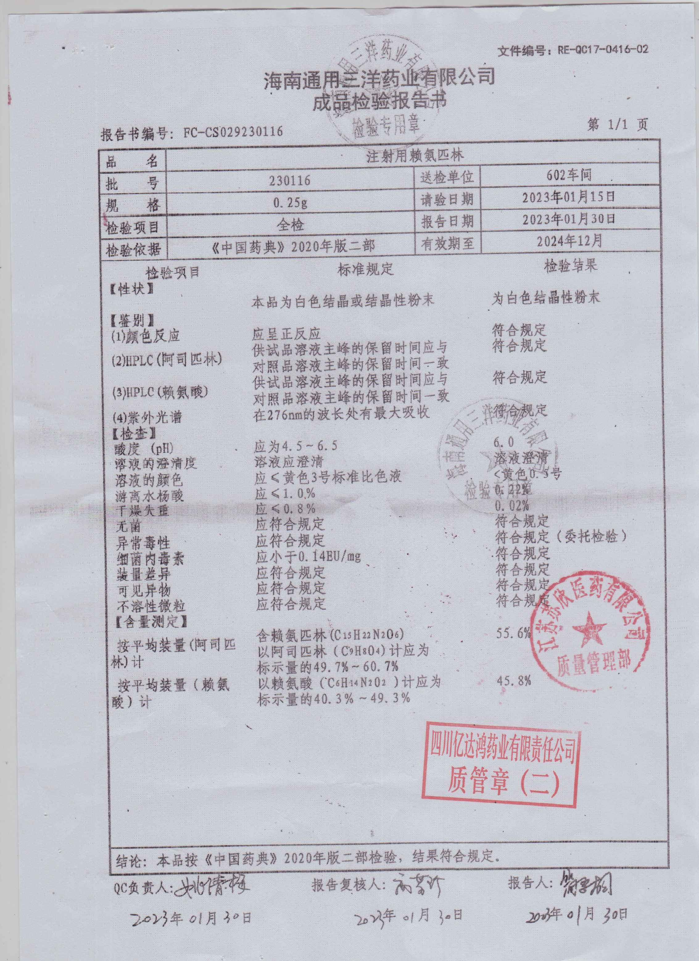 注射用赖氨匹林230116