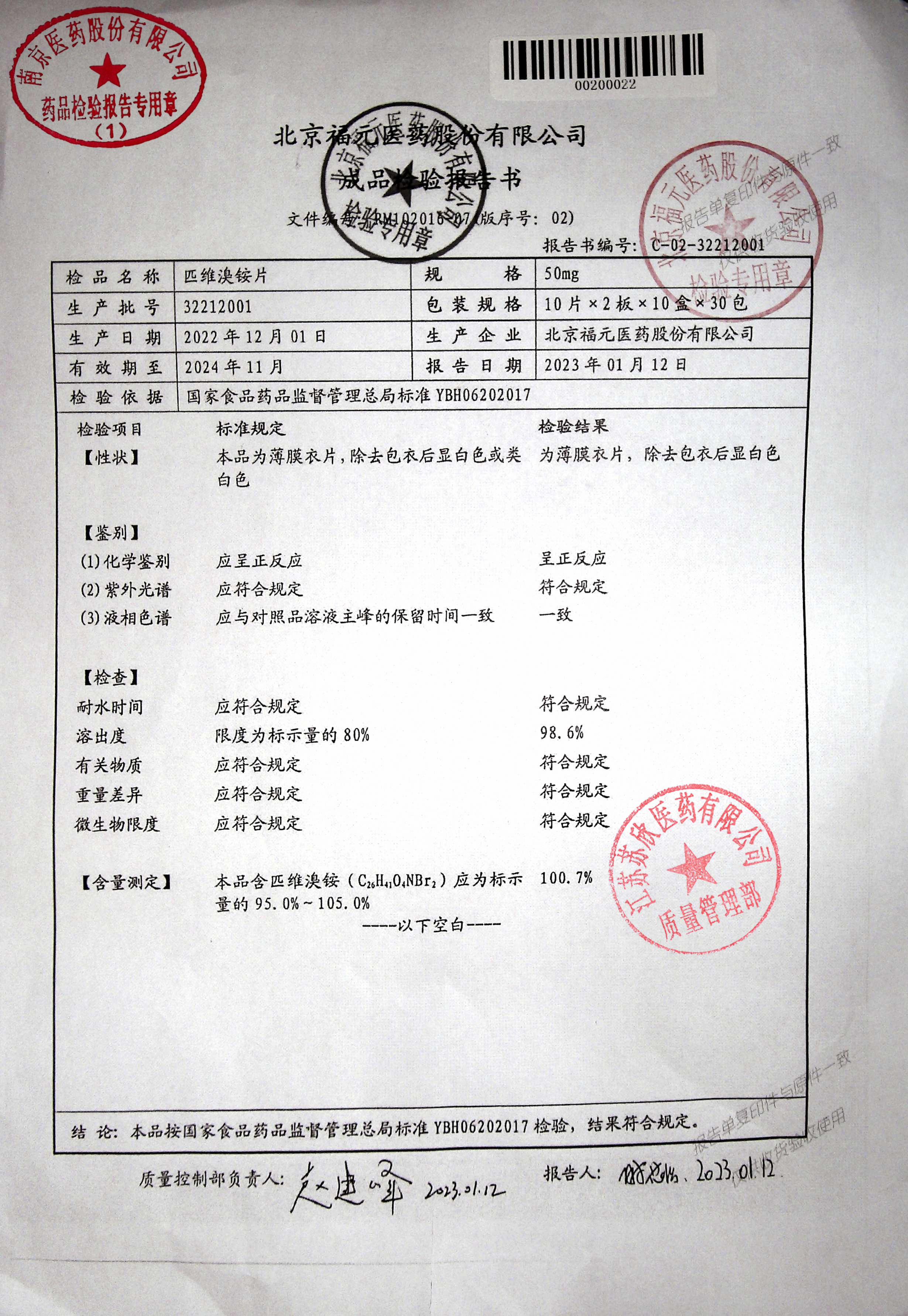 匹维溴铵片32212001