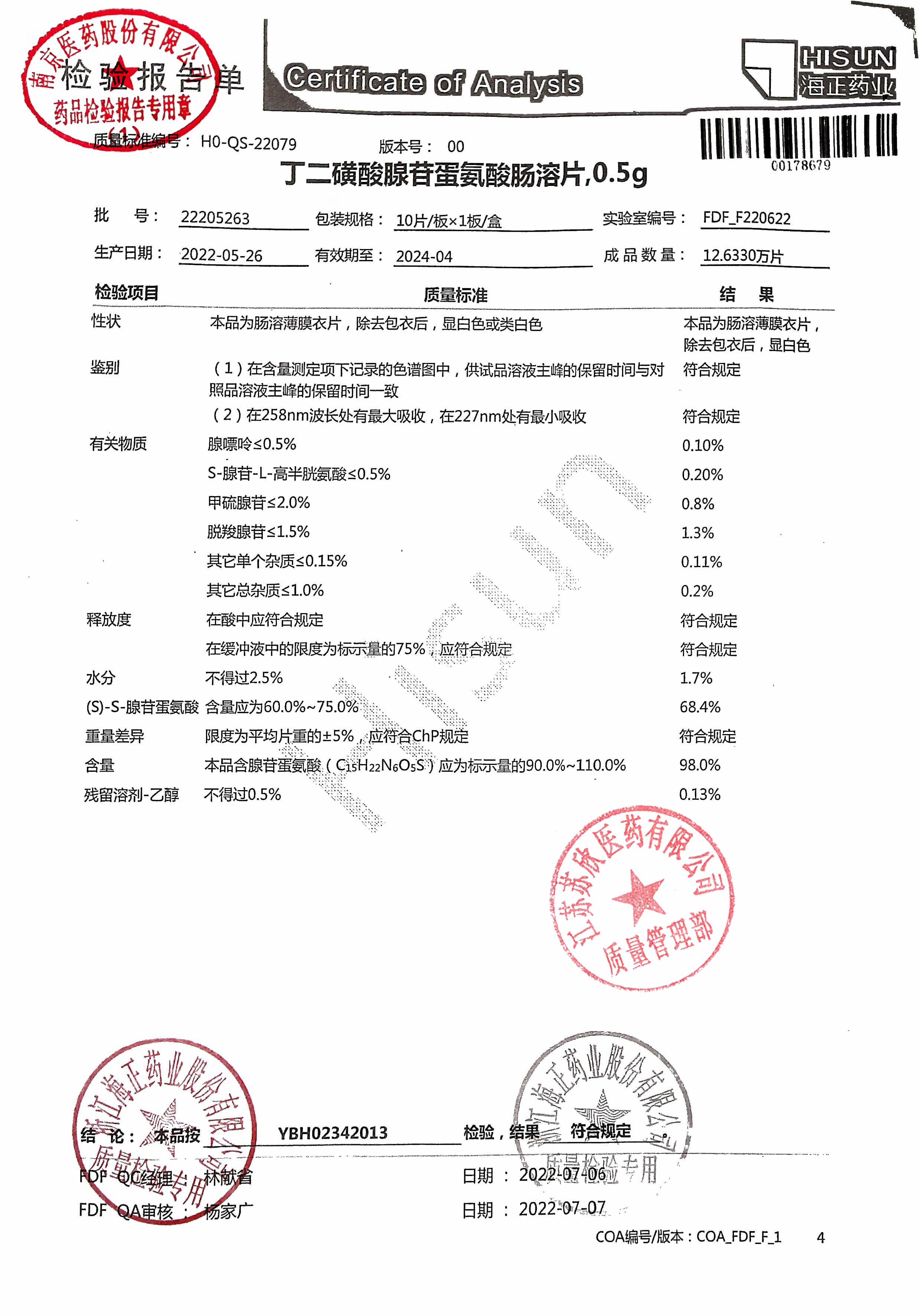 丁二磺酸腺苷蛋氨酸肠溶片22205263