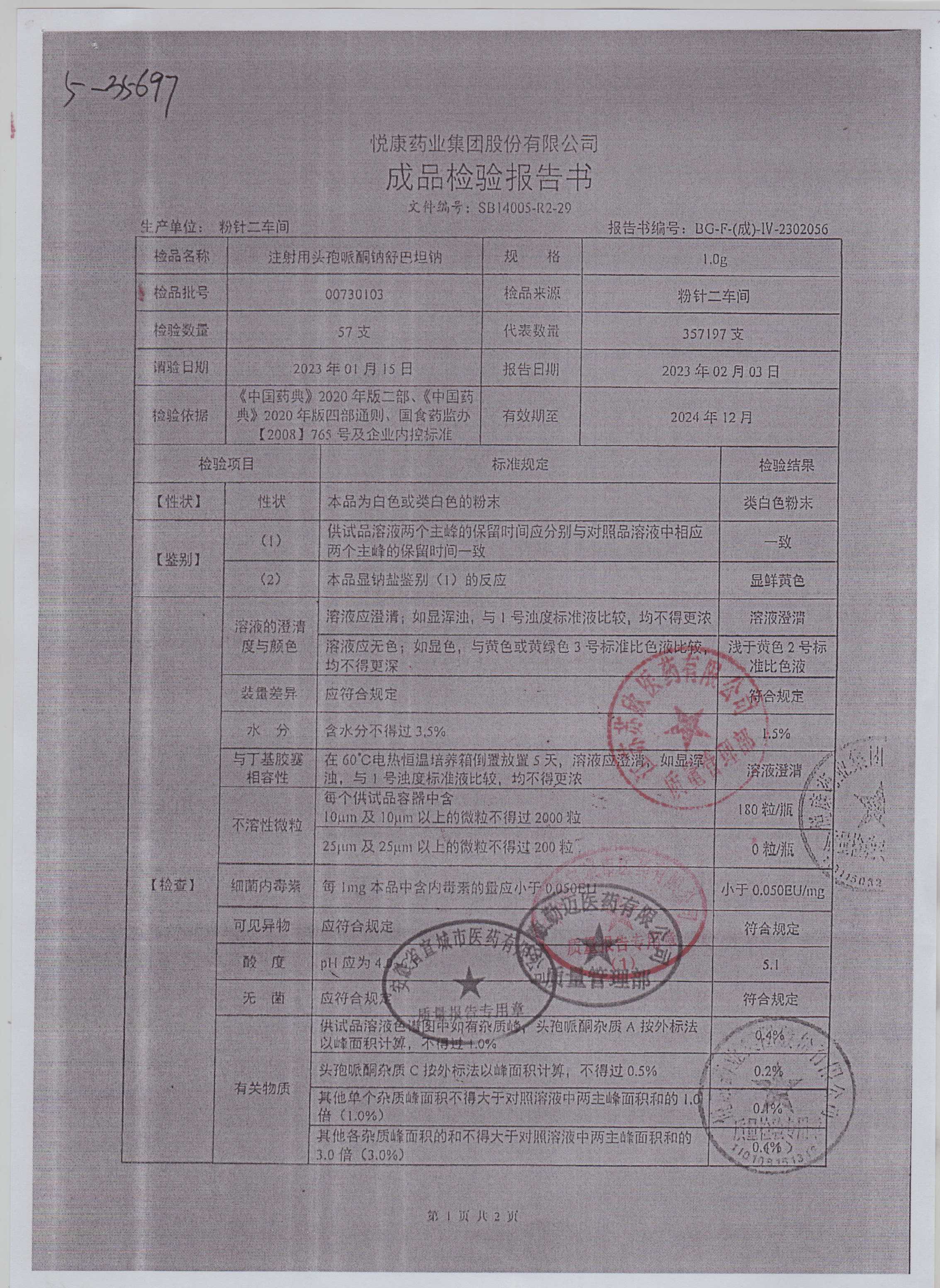 注射用头孢哌酮钠舒巴坦钠00730103(1)