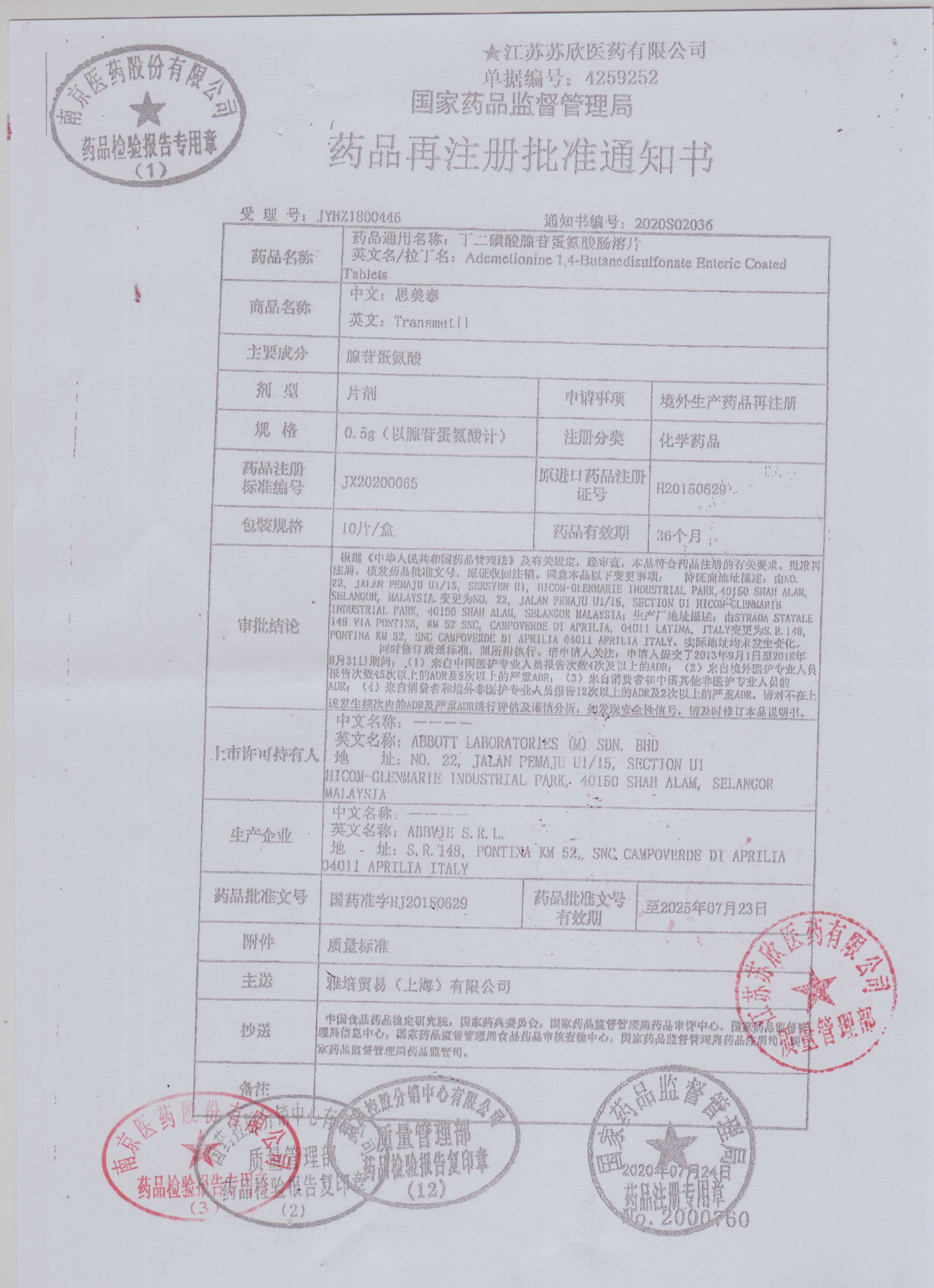 丁二磺酸腺苷蛋氨酸肠溶片1165240(2)