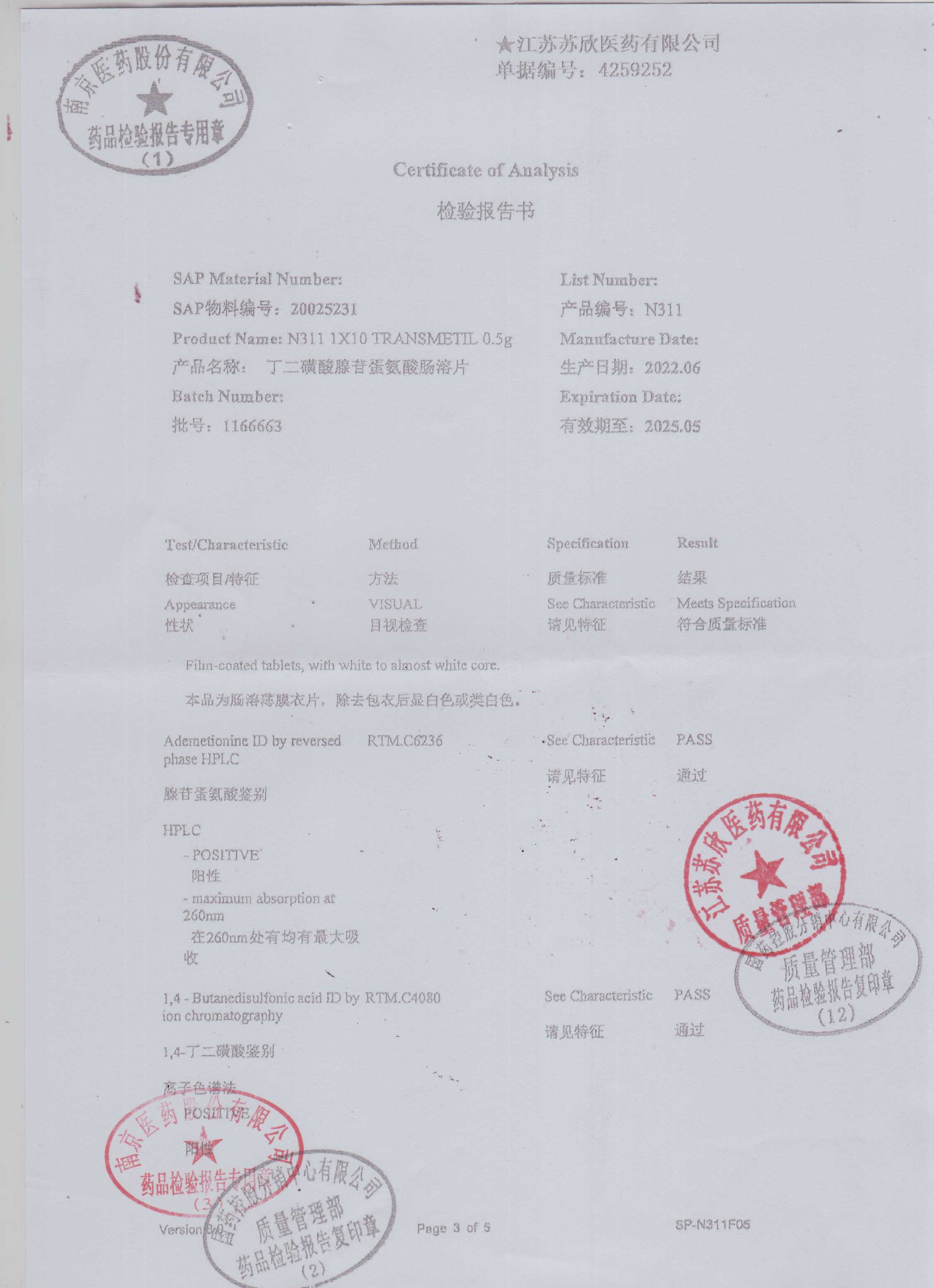 丁二磺酸腺苷蛋氨酸肠溶片1166663(5)