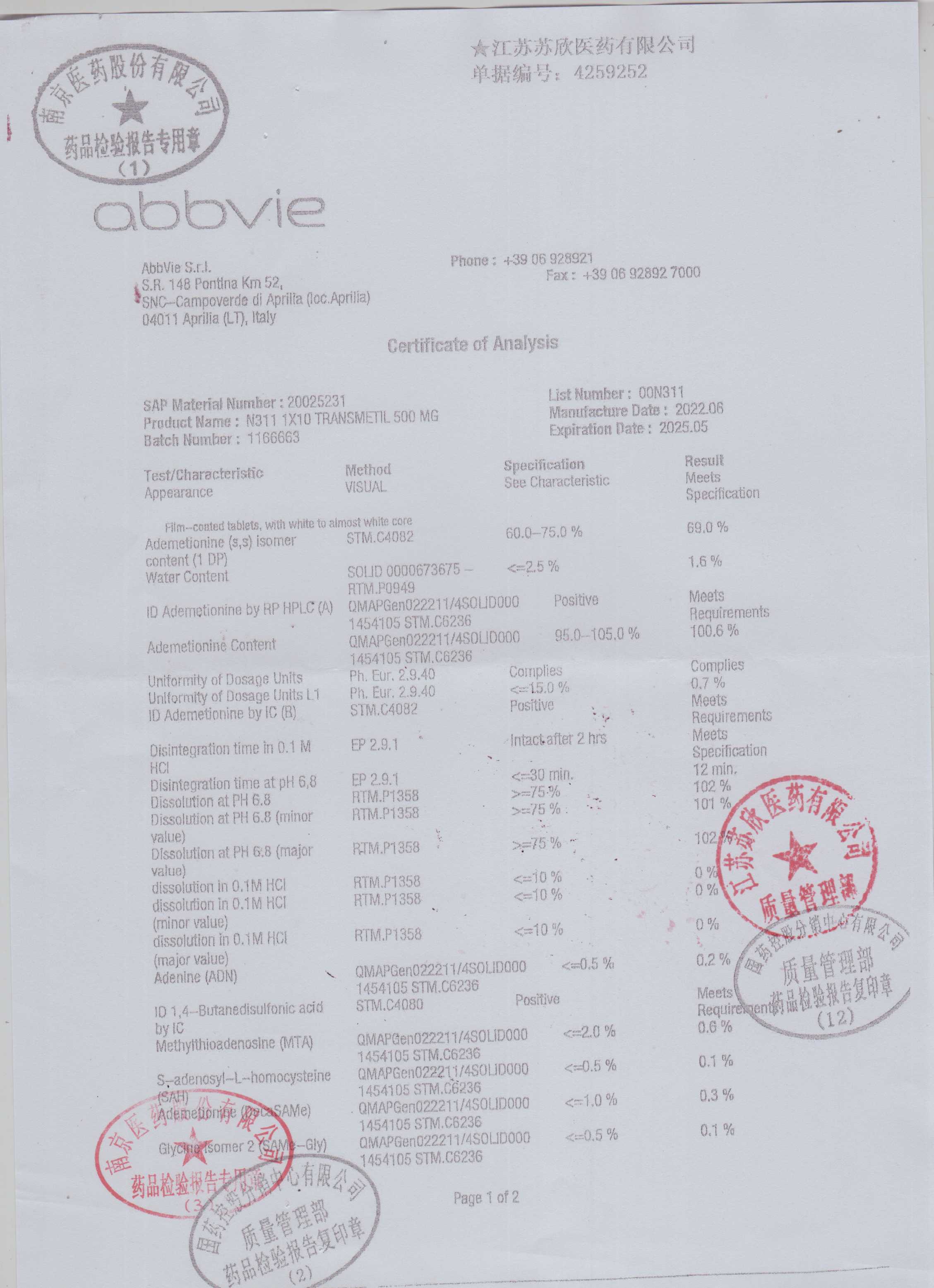 丁二磺酸腺苷蛋氨酸肠溶片1166663(9)