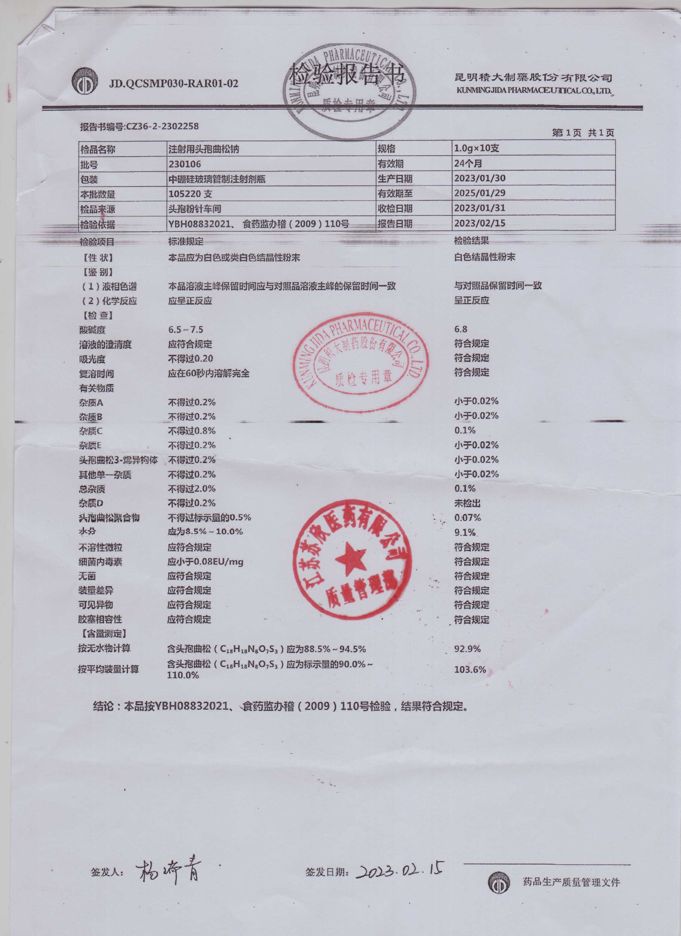 注射用头孢曲松钠230106