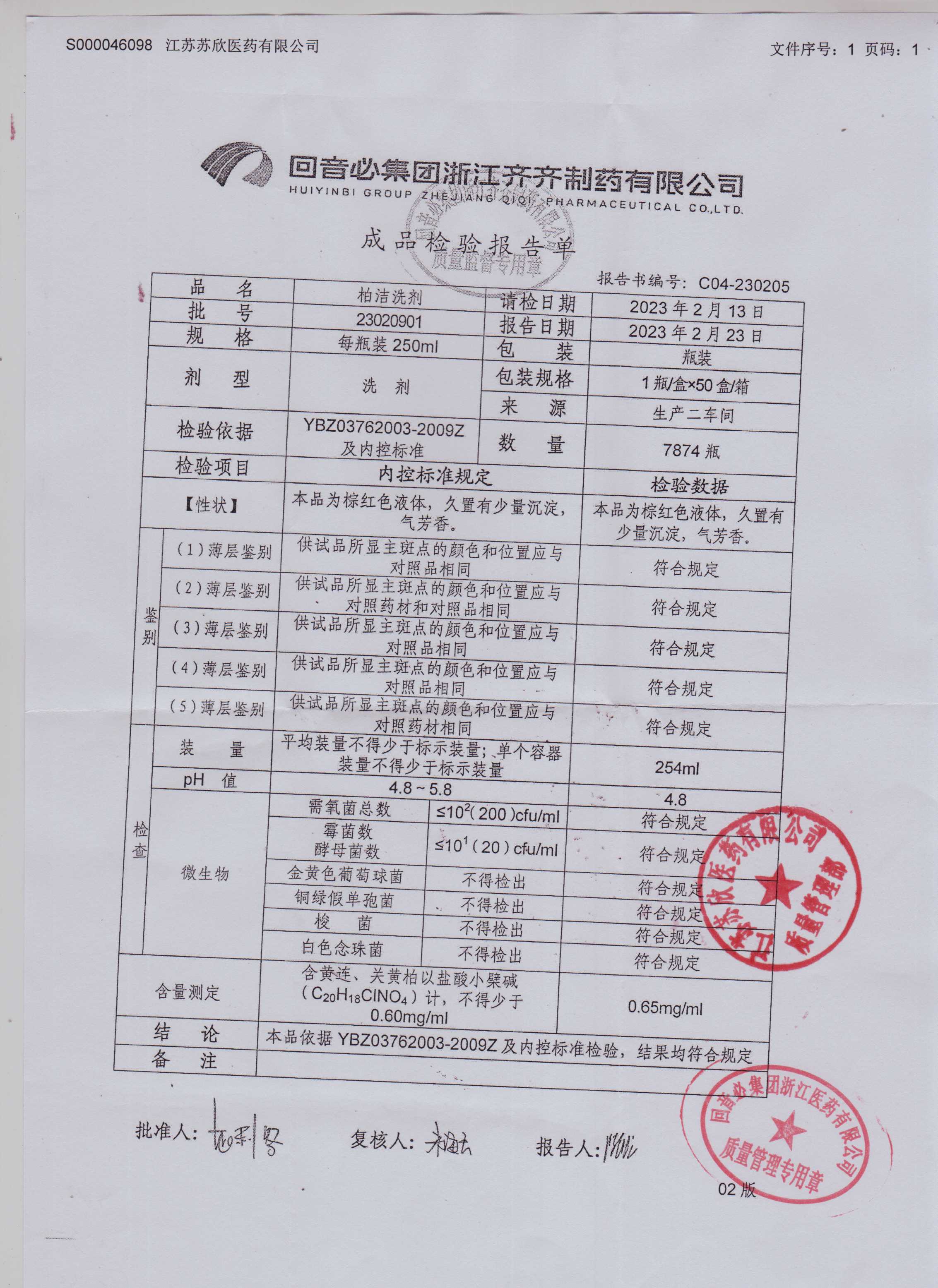 >> 检验报告书 >> 检验报告书