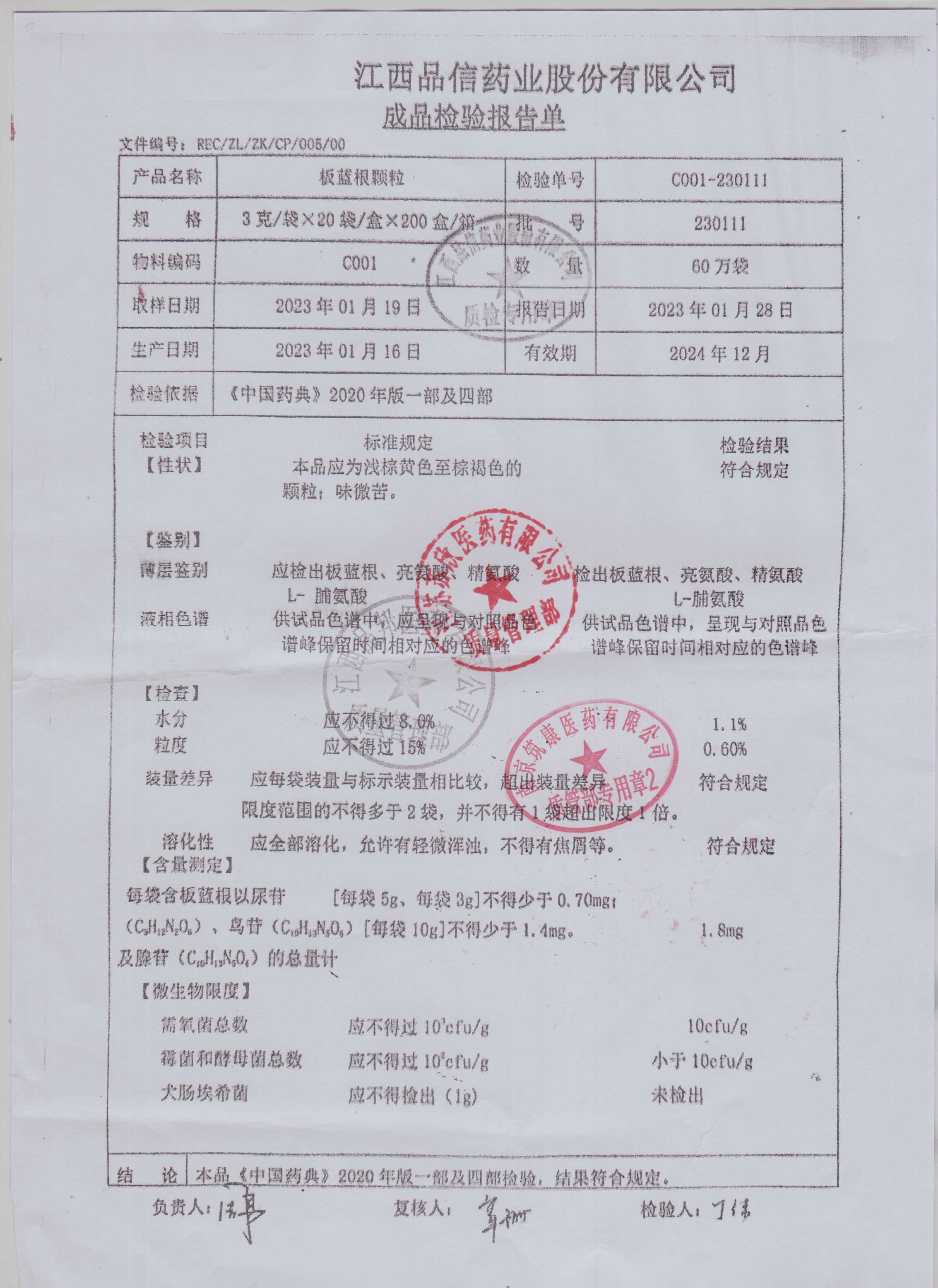 板蓝根颗粒230111