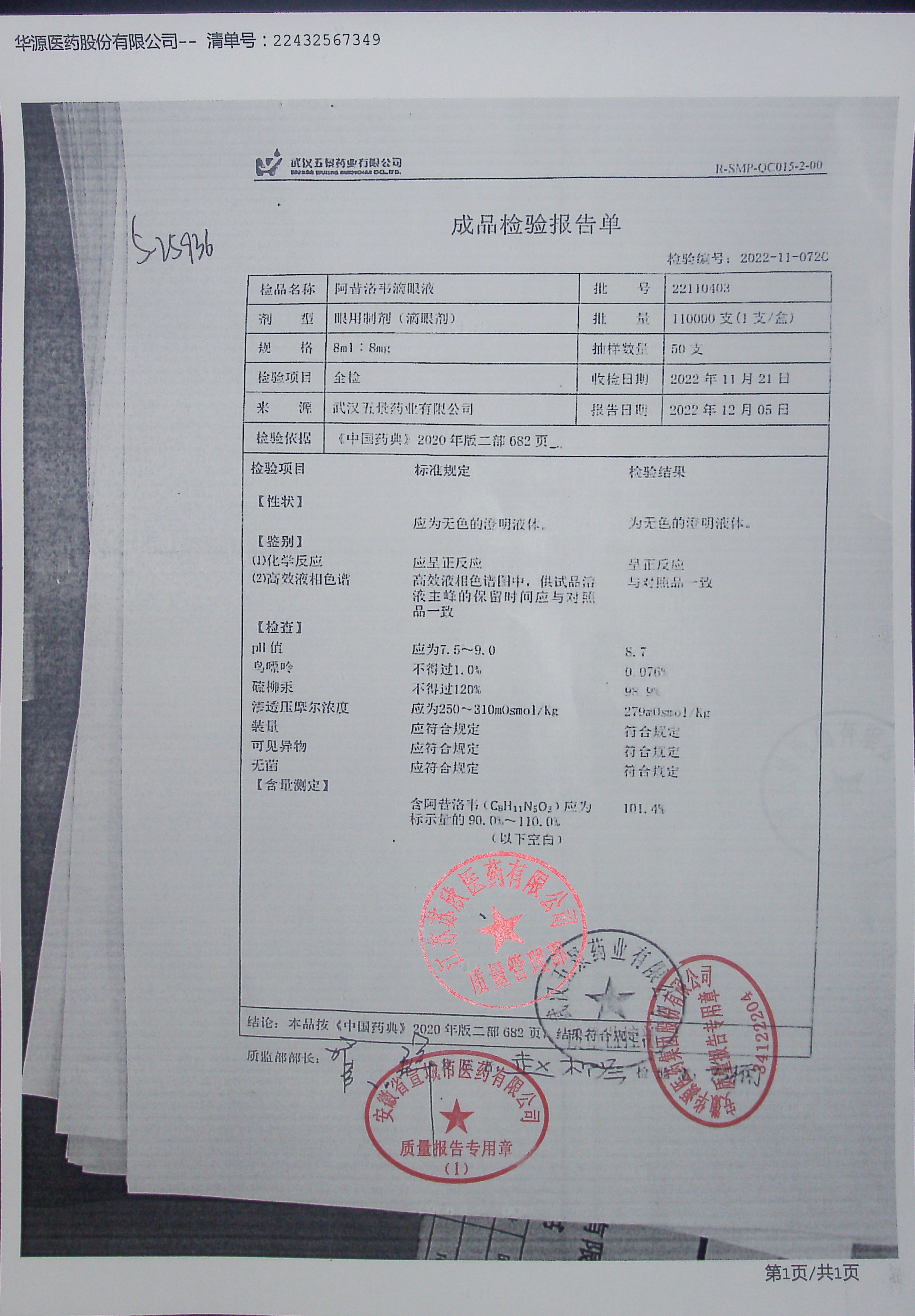 阿昔洛韦滴眼液22110403