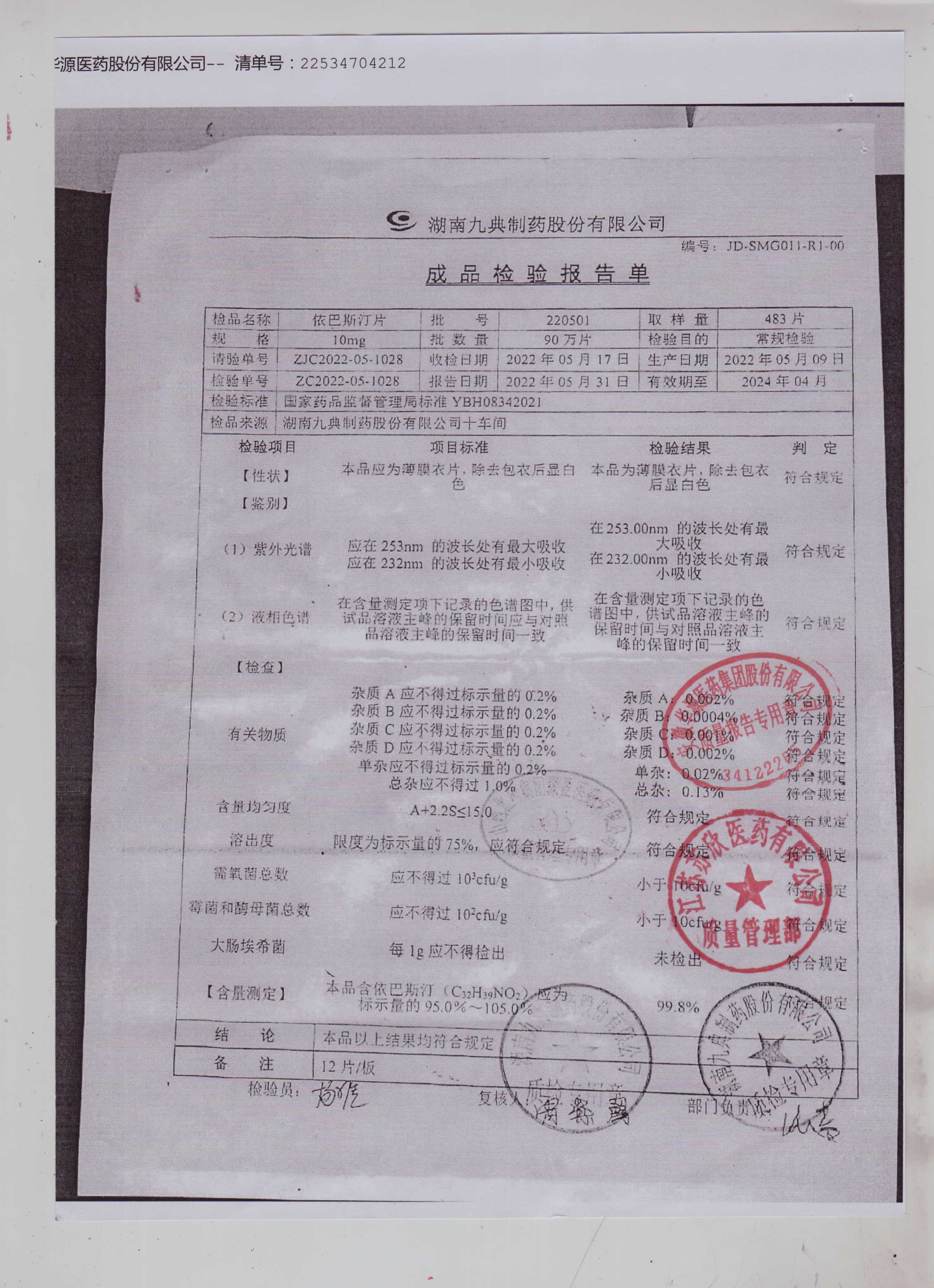 依巴斯汀片220501