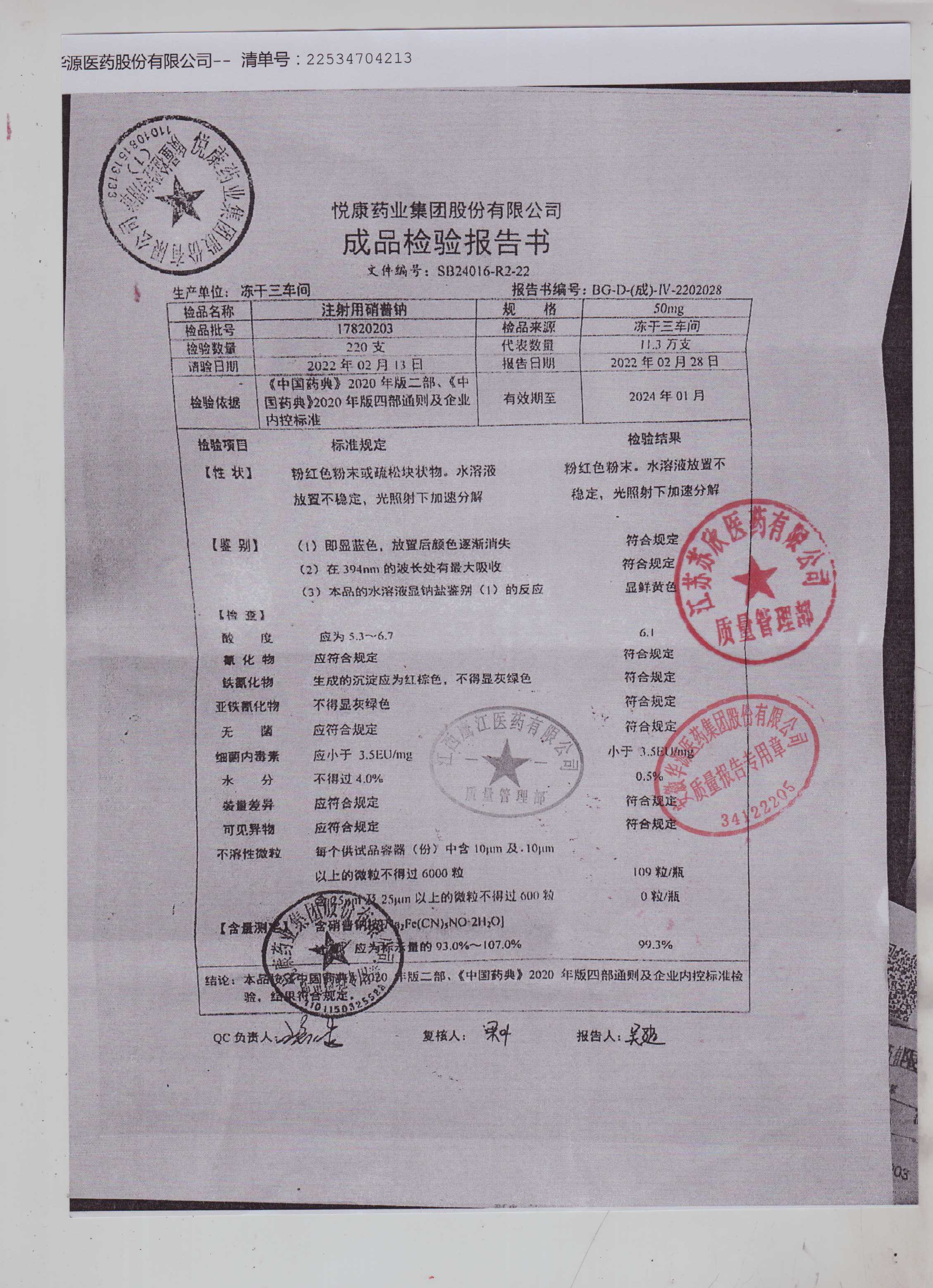 注射用硝普钠17820203