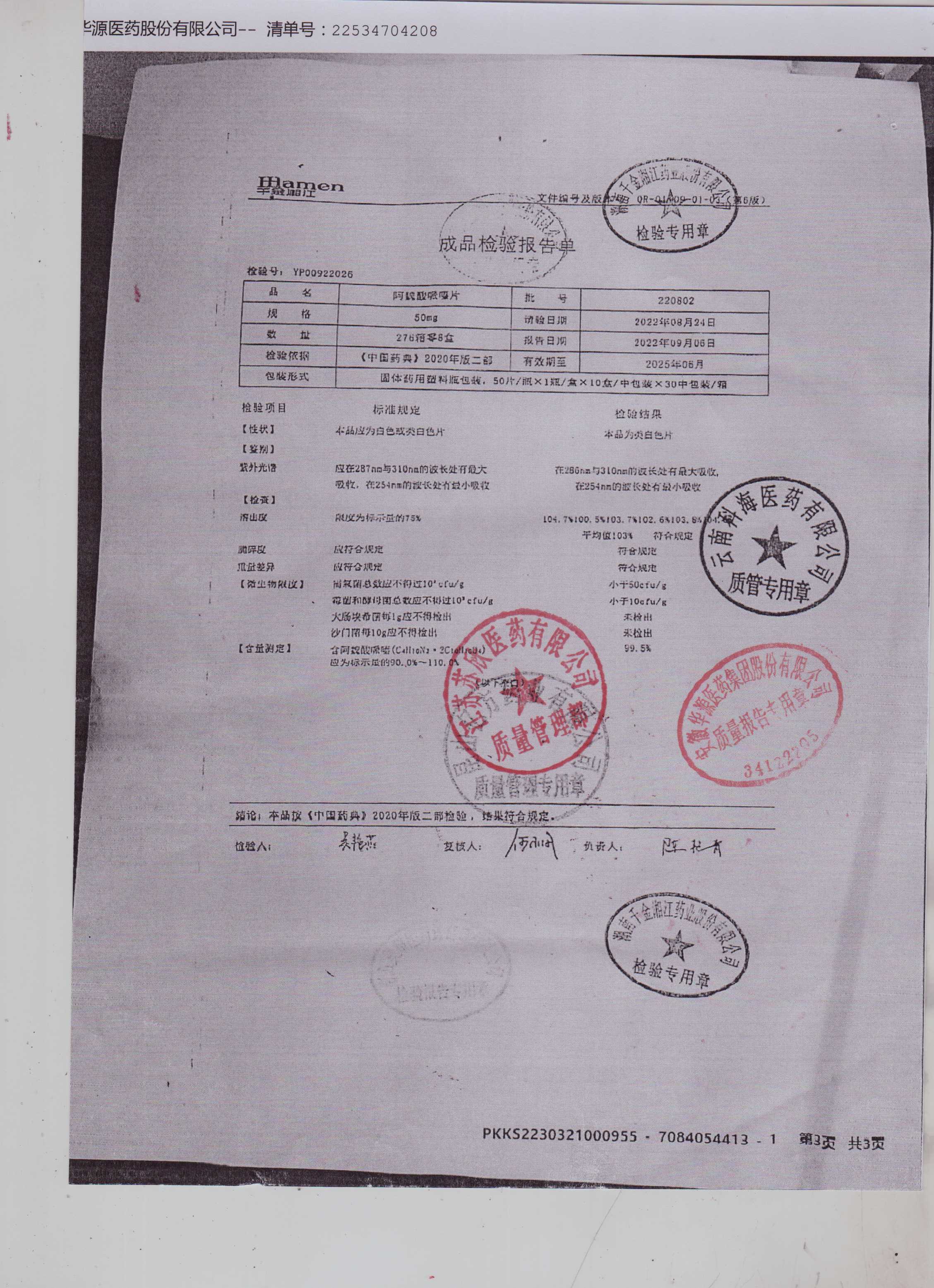 检验报告书