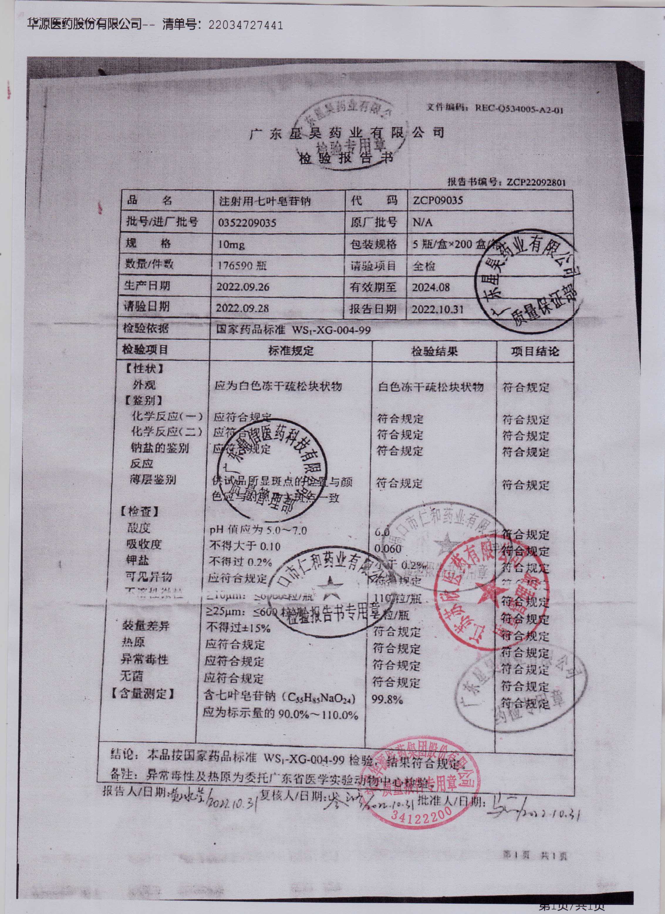注射用七叶皂苷钠0352209035