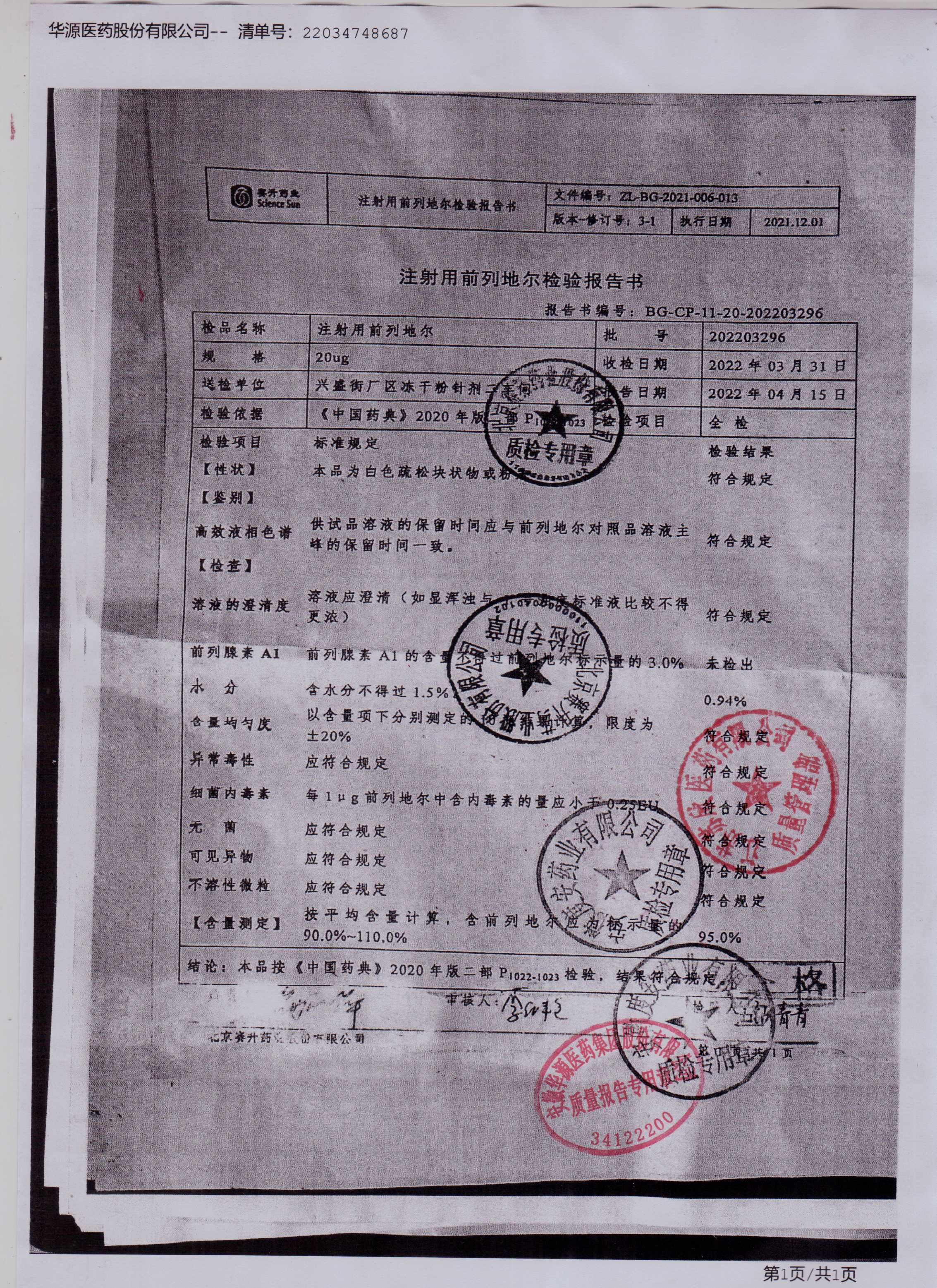 注射用前列地尔202203296