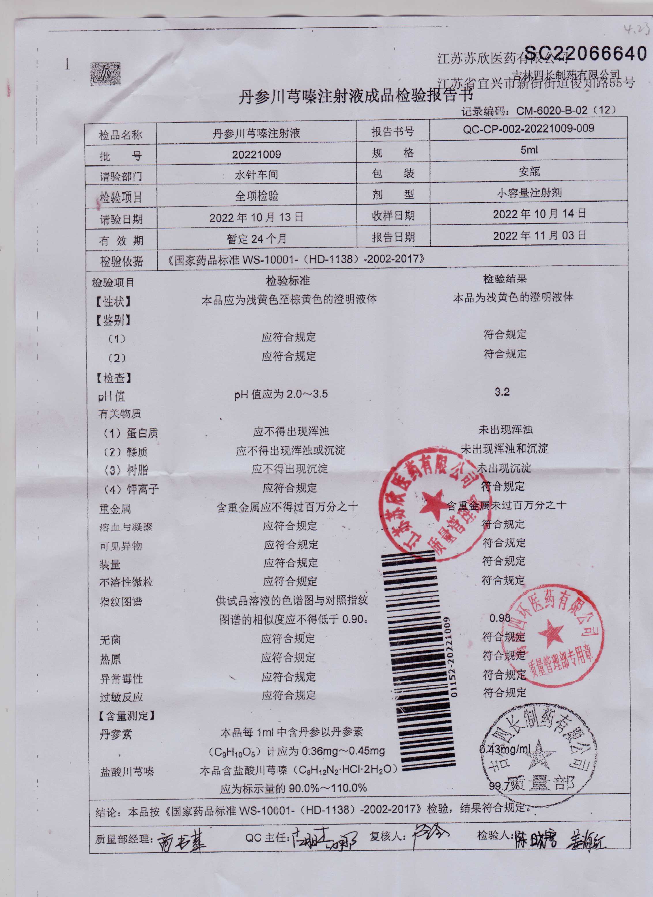 丹参川芎嗪注射液20221009