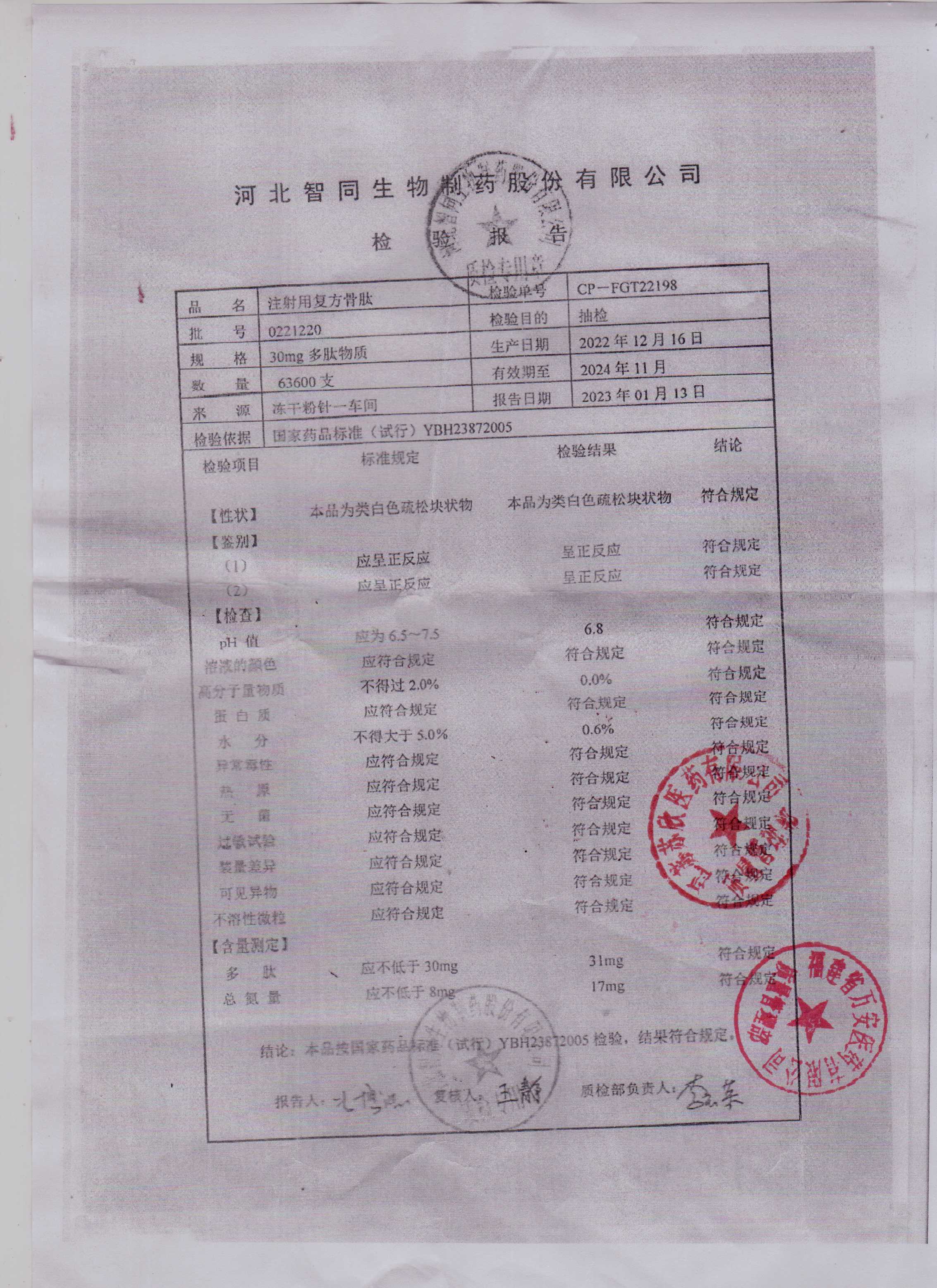 注射用复方骨肽0221220