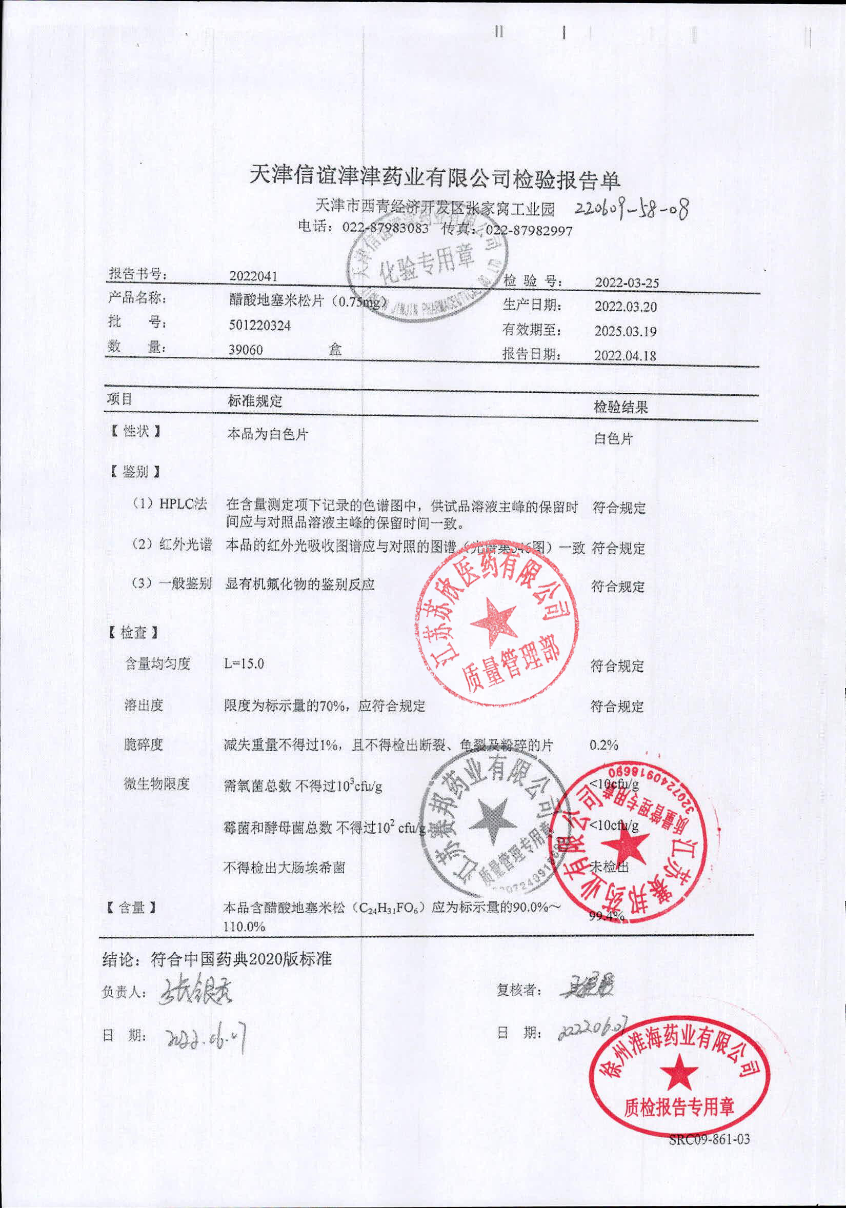 醋酸地塞米松片501220324