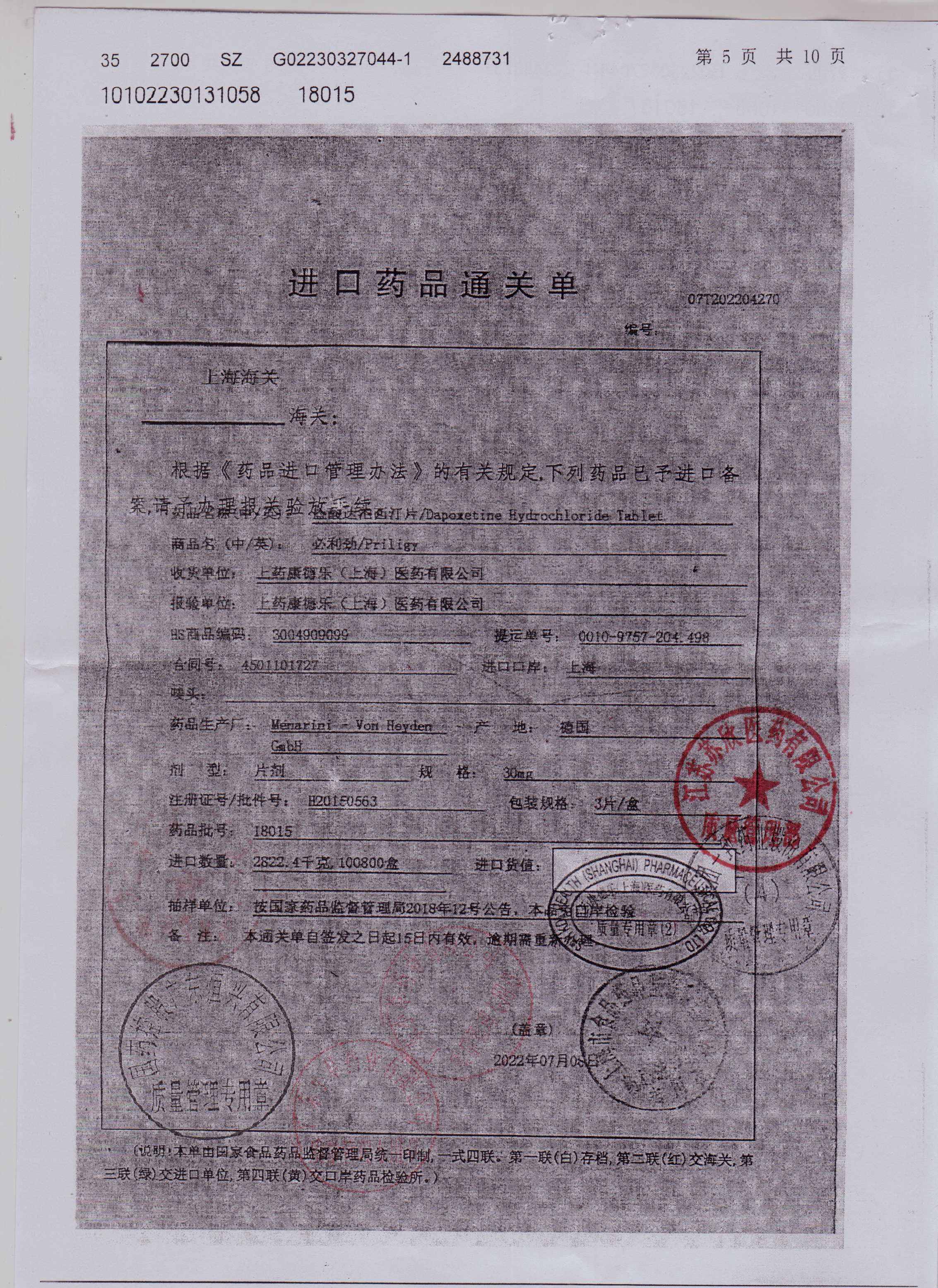 盐酸达泊西汀片18015(5)