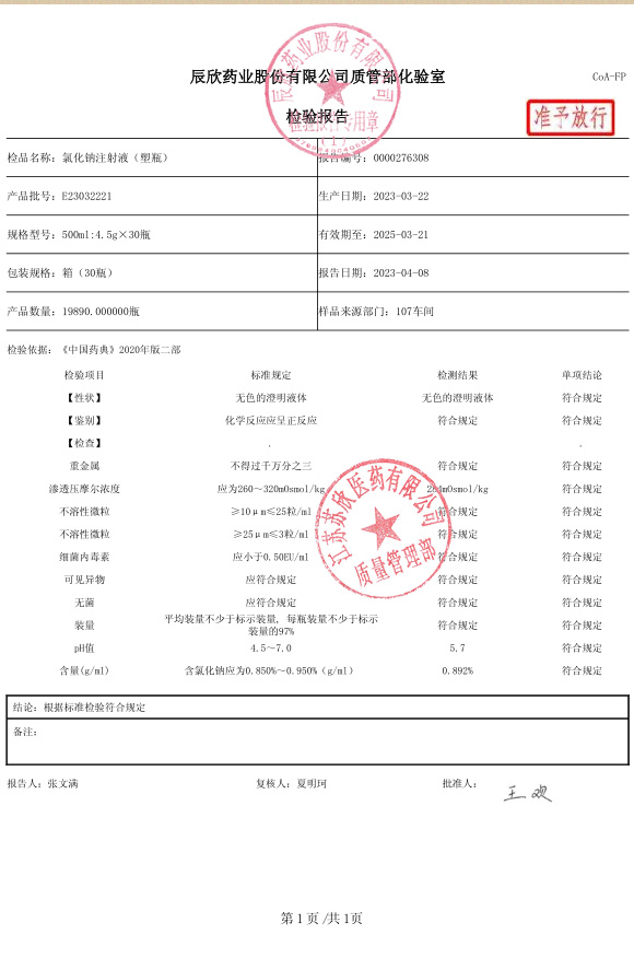 氯化钠注射液(塑瓶)E23032221