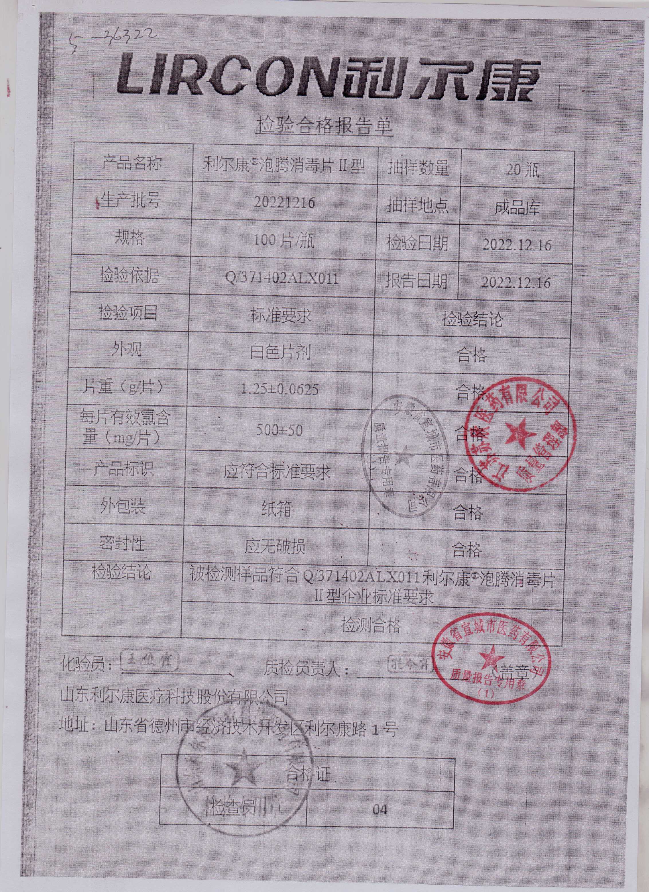 利尔康泡腾消毒片II型20221216