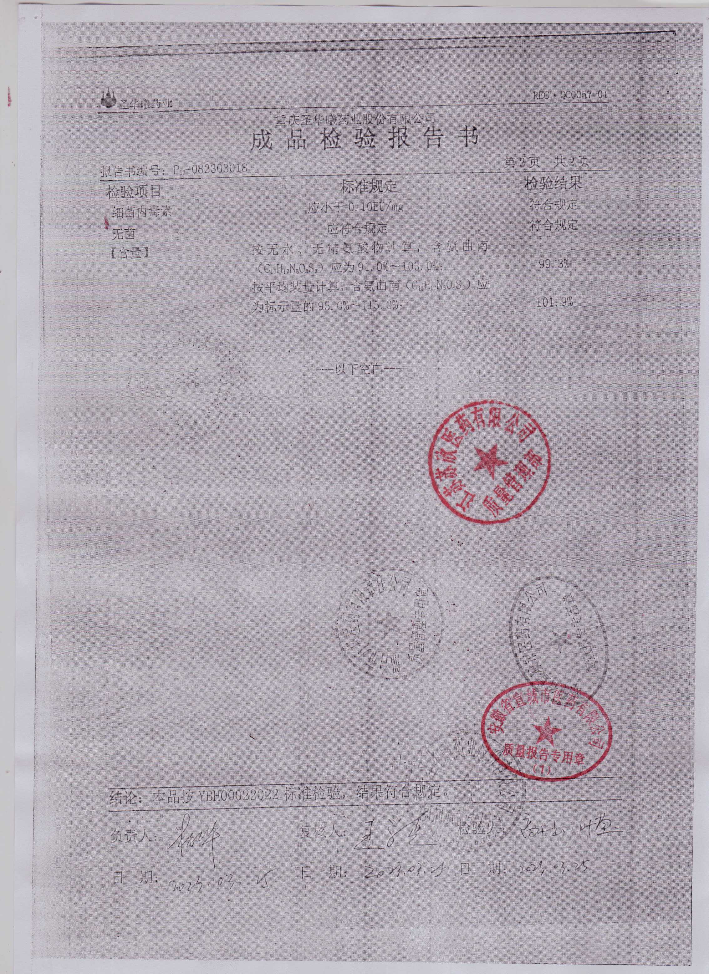 >> 检验报告书 >> 检验报告书