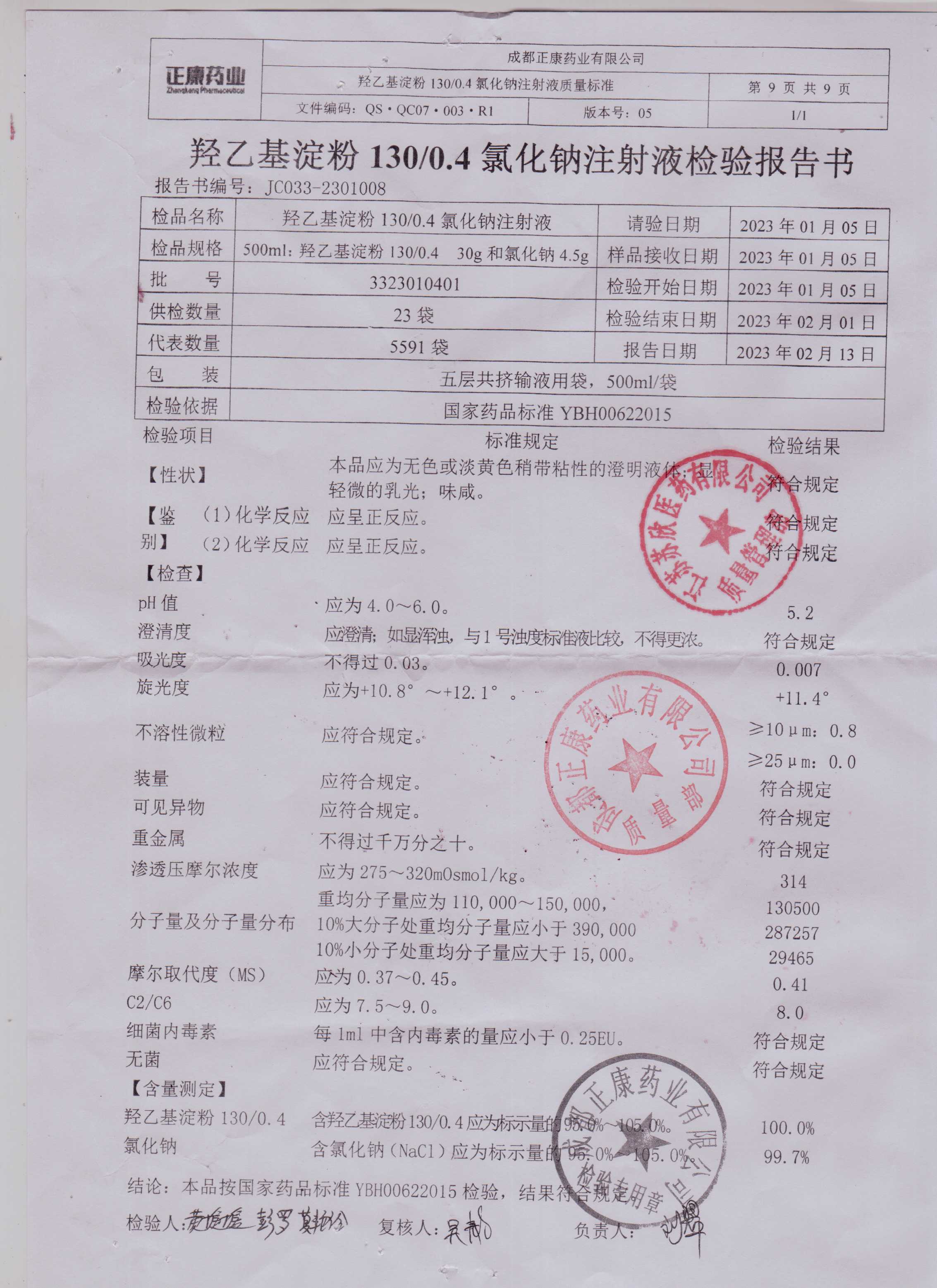 羟乙基淀粉130 0.4氯化钠注射液3323010401